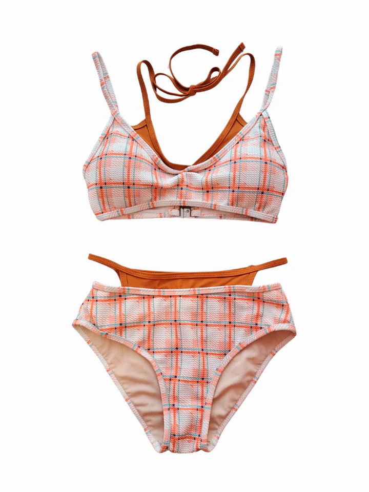 Tampil mencuri perhatian dengan Nova Plaid Double Layer Bikini Set in Orange yang memancarkan gaya ceria dan penuh karakter. Corak plaid yang bold memberi sentuhan playful namun tetap chic, dipadankan dengan fabrik dua lapis yang membentuk siluet lebih kemas dan selesa.