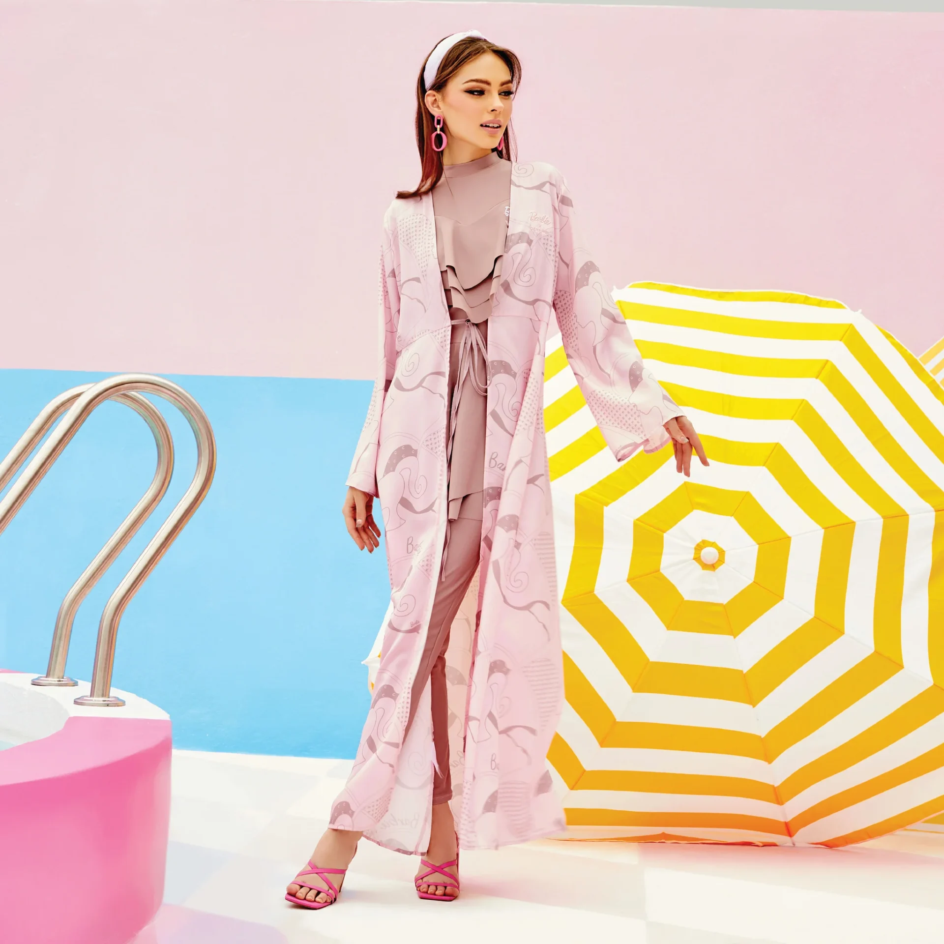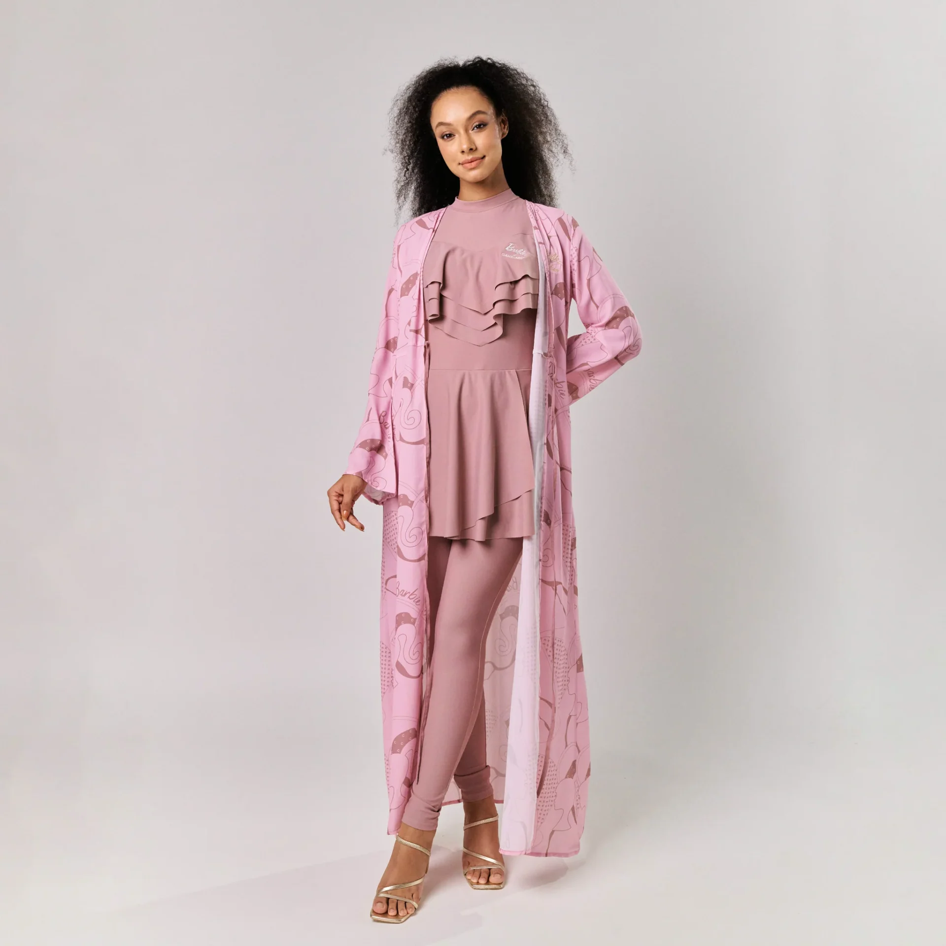Barbie™ x Cakenis menampilkan swimwear modest pertama Barbie di Asia Tenggara, sesuai untuk si glam girly mahupun ibu yang ingin berkongsi momen Barbie bersama anak. Set tiga helaian ini diperbuat daripada material premium yang ringan dan cepat kering, lengkap dengan sut berlengan panjang, seluar renang labuh dan kaftan chiffon bercetak sedondon, gabungan sempurna antara gaya, keselesaan dan sentuhan magis Barbie.