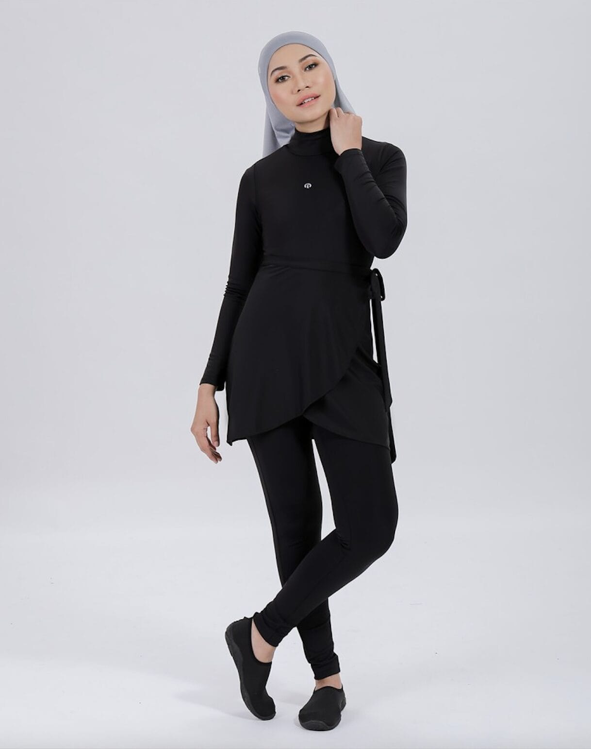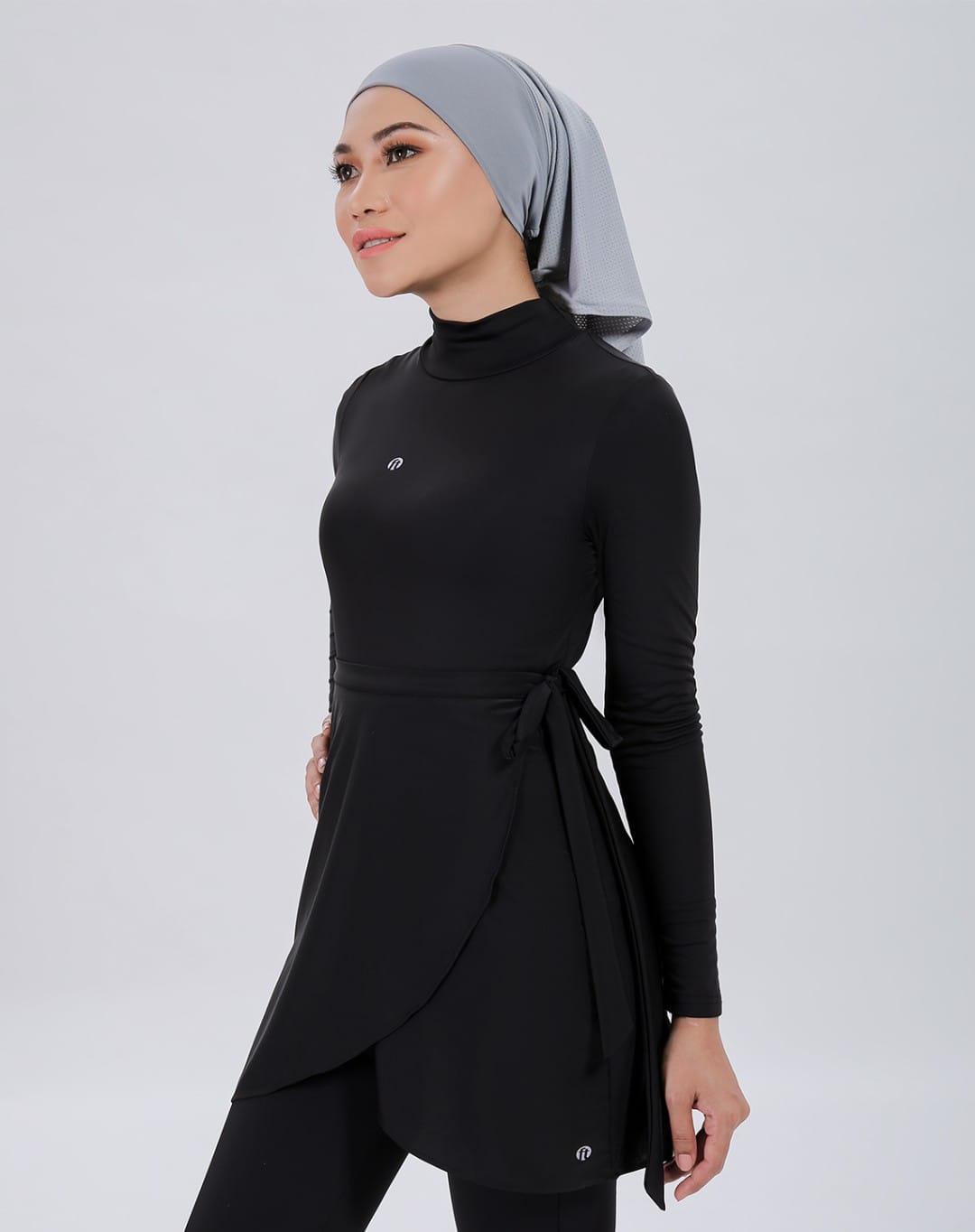 Set swimwear Ariani ini lengkap dengan t-shirt, seluar dan skirt, direka untuk gaya yang praktikal tetapi tetap chic. Turtleneck bodysuit dengan snaps memberi keselesaan dan kemudahan, manakala skirt gaya tulip berfungsi sebagai hip cover yang elegan.