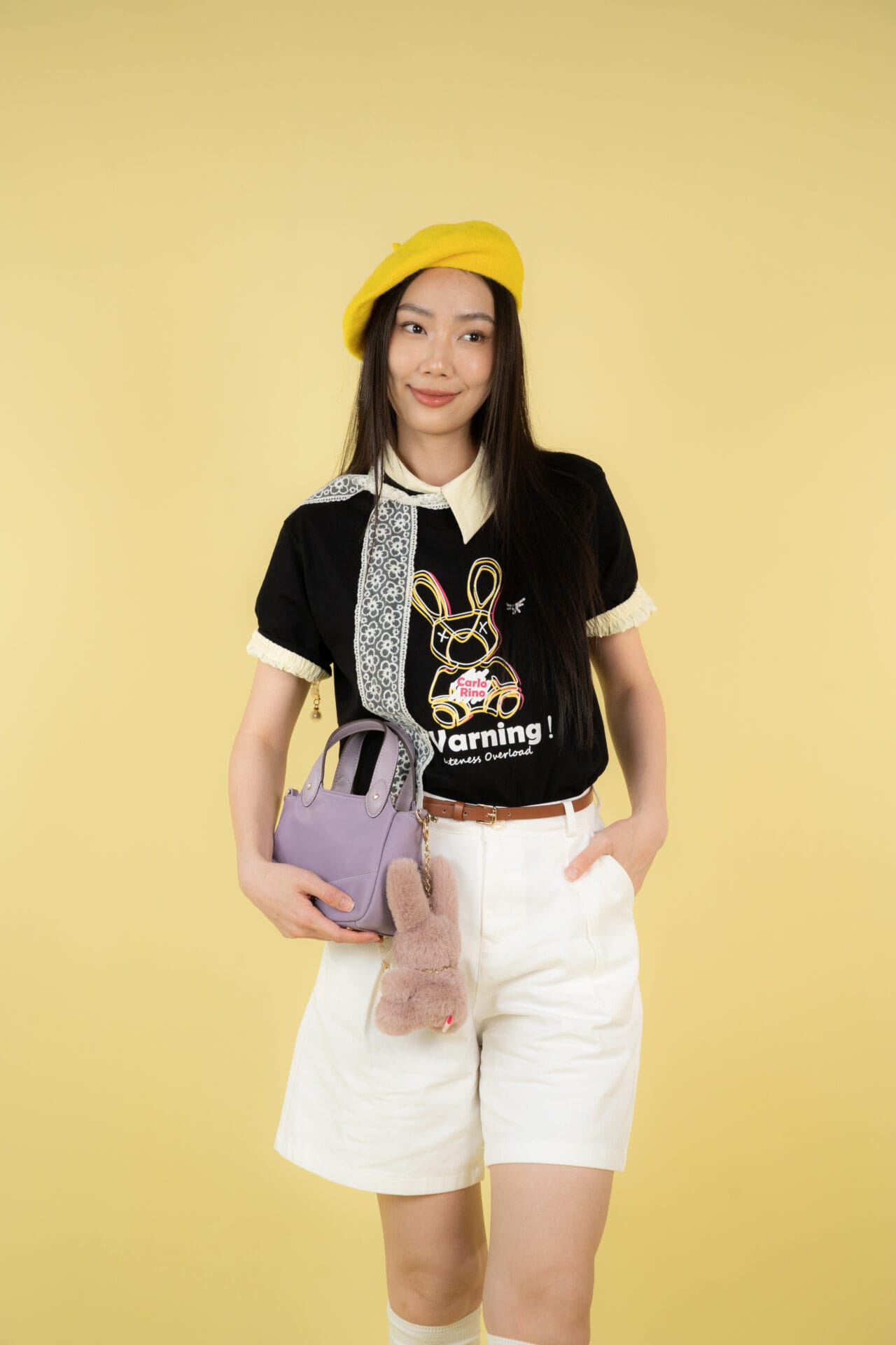 Diperbuat daripada nilon ringan dan kalis air, koleksi ini hadir dengan beg tangan comel, aksesori beg arnab lembut, dompet padanan, sneakers feminin dan T-shirt manis—sempurna untuk penampilan harian yang fun dan penuh personaliti.