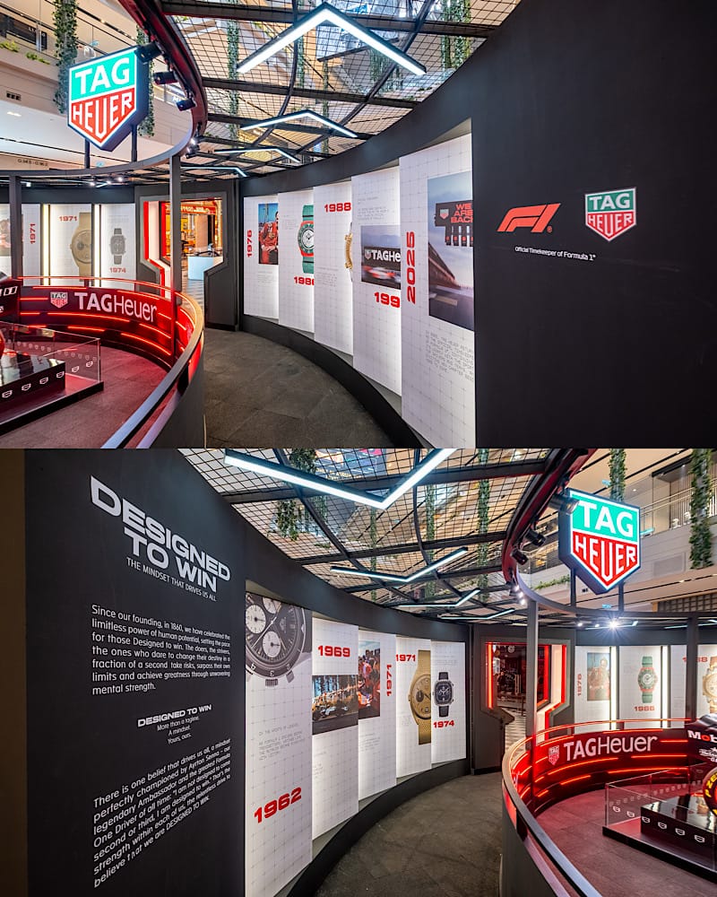 “Designed to Win”, sebuah pameran yang dianggap sebagai satu penghormatan kepada jenama jam tangan unggul, TAG Heuer dalam penglibatannya dalam sukan permotoran antarabangsa yang sudah memasuki enam dekad. Ruang imersif ini turut menyerlahkan kerjasama berterusan jenama tersebut bersama Formula 1, mencerminkan komitmen mendalam terhadap prestasi dan inovasi pembuatan jam tangan.