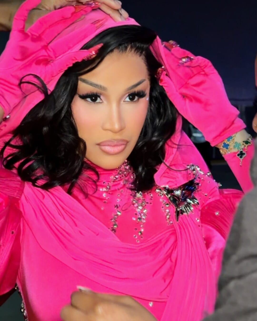 Cardi B tampil bold dan glamor dalam bodysuit fuchsia berhiaskan kristal yang menyerlahkan lekuk tubuhnya ketika membuat persembahan di festival MDLBEAST Sounsdstorm.