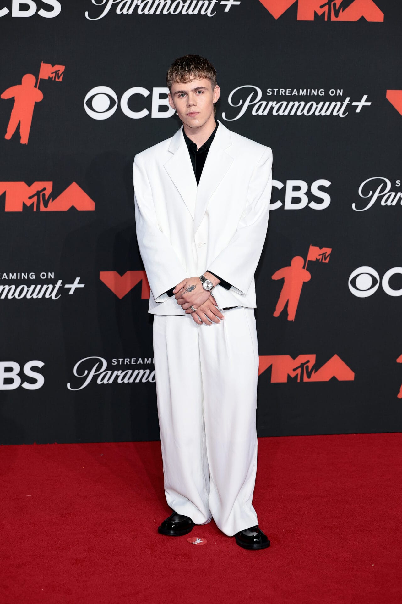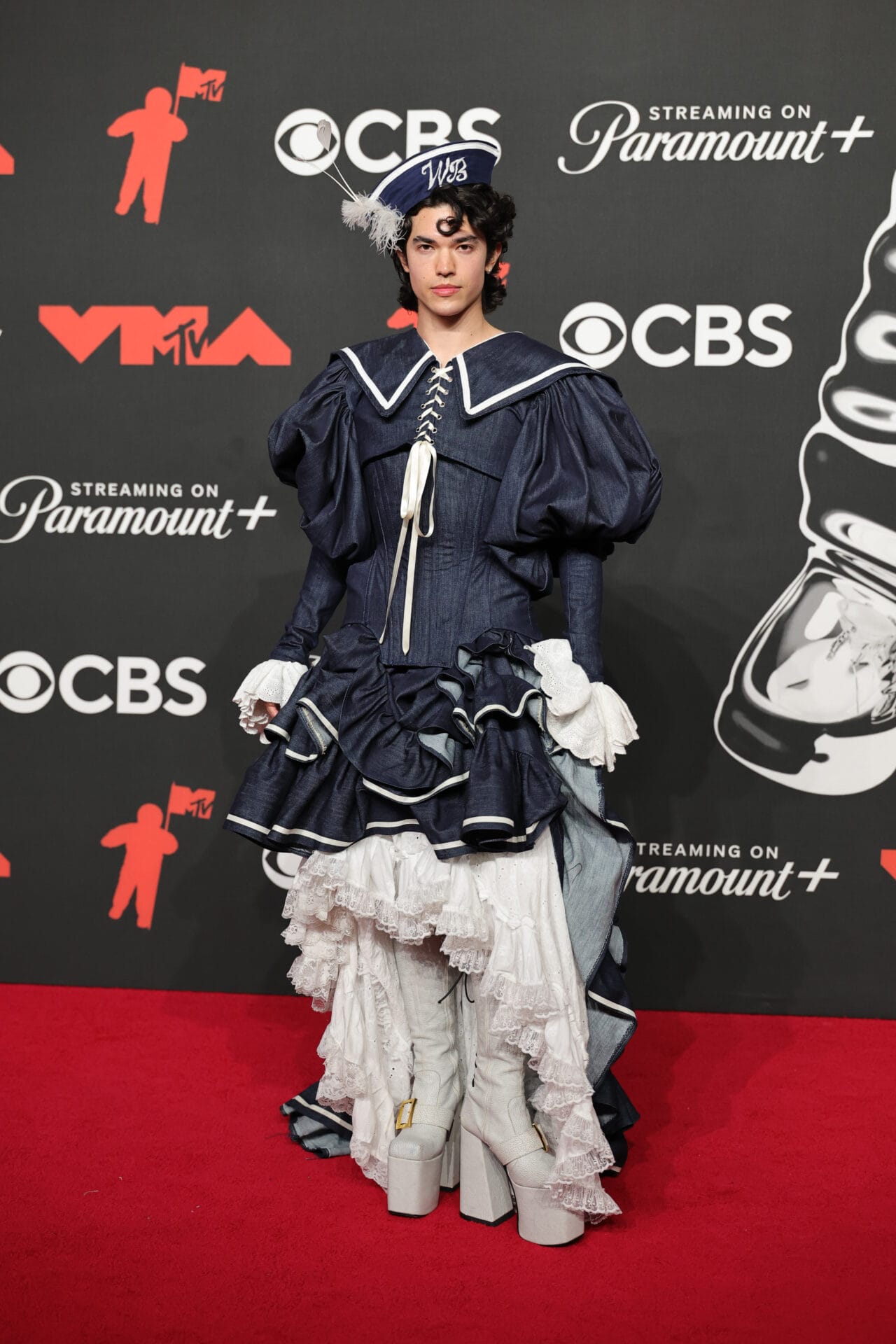 Tate McRae melangkah penuh anggun di karpet merah dengan gaun putih sheer gaya Yunani rekaan khas Ludovic de Saint Sernin. Busana tersebut menampilkan potongan bustier rendah bersama fabrik nipis yang beralun, menampakkan rekaan berani pada bahagian bawah yang dipadankan di dalamnya.