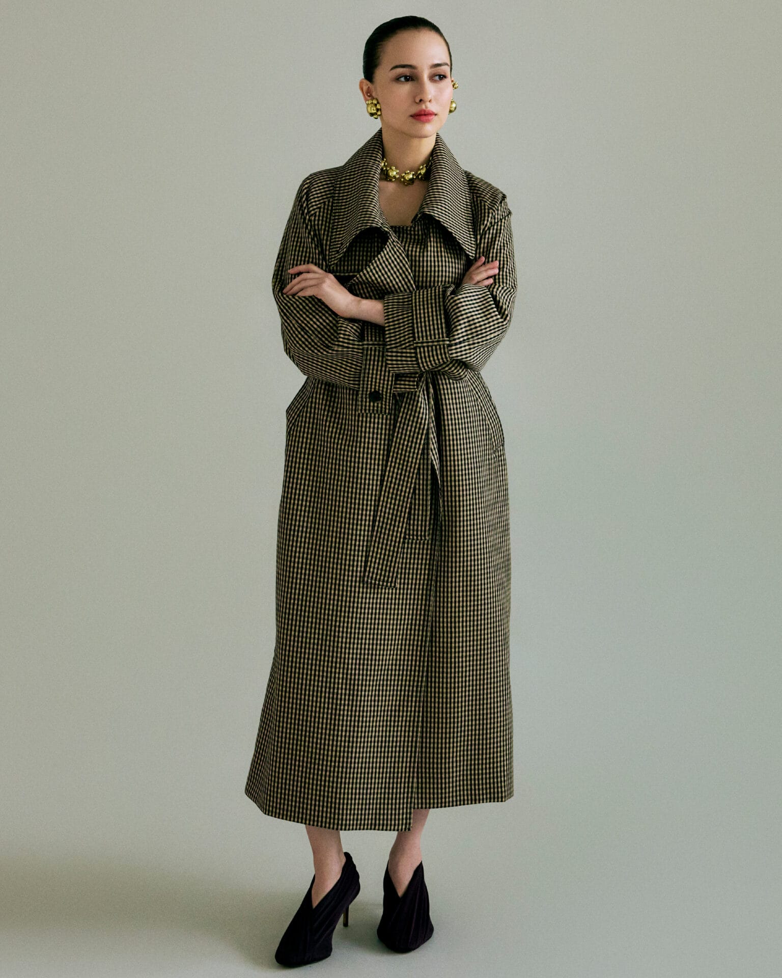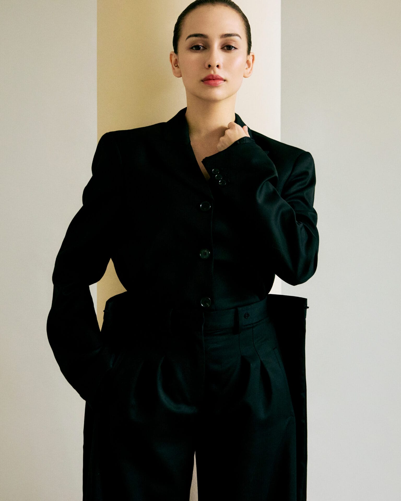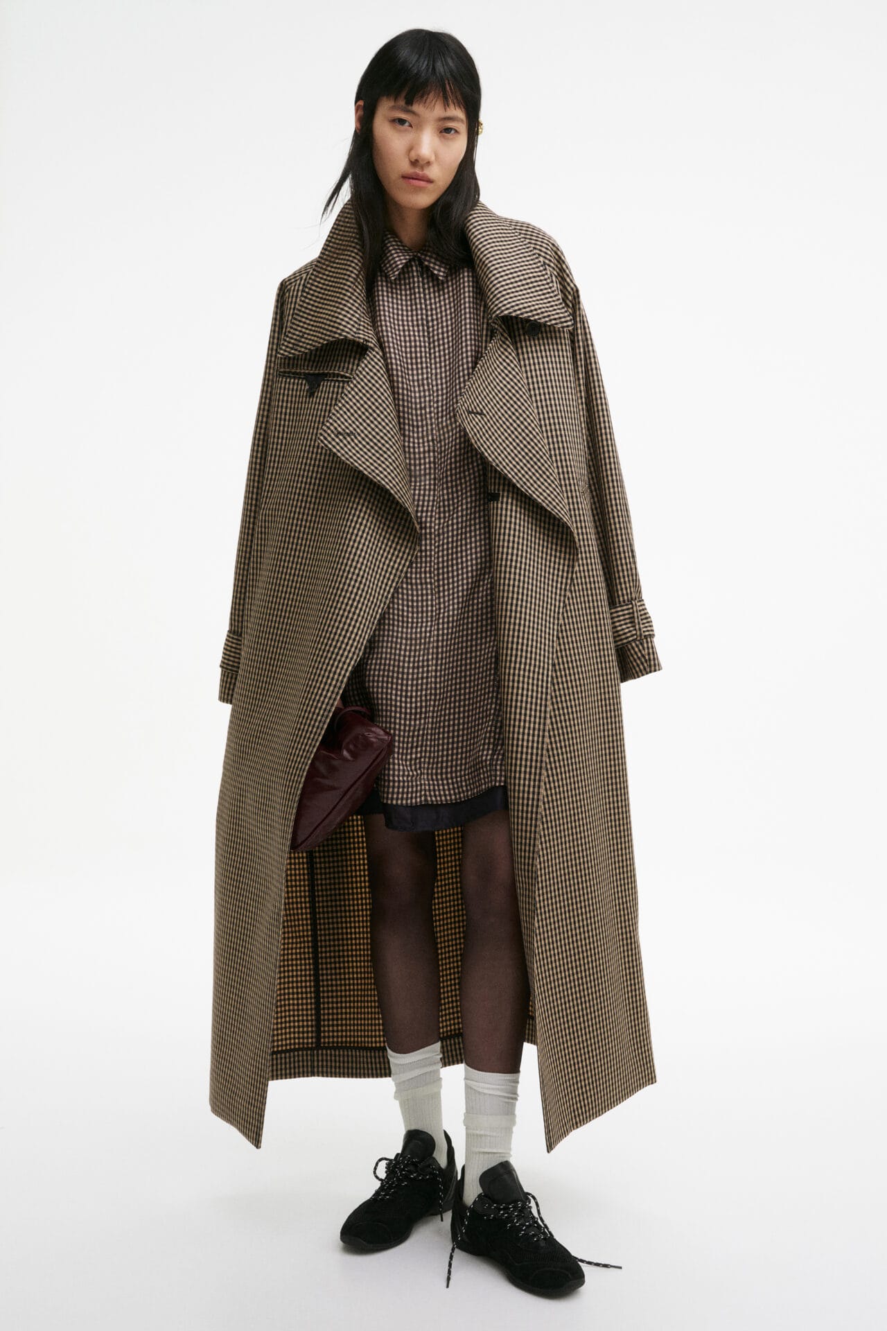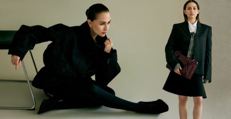 Walaupun eksperimen menjadi nadi koleksi ini, elemen tailoring tetap menjadi asas penting. Antara rekaan utama termasuk blazer hitam dengan belahan tinggi di bahagian belakang, kot bercorak cek coklat dengan garis leher memanjang, serta seluar wide-leg yang boleh digayakan dengan pelbagai cara untuk menghasilkan volum dramatik.