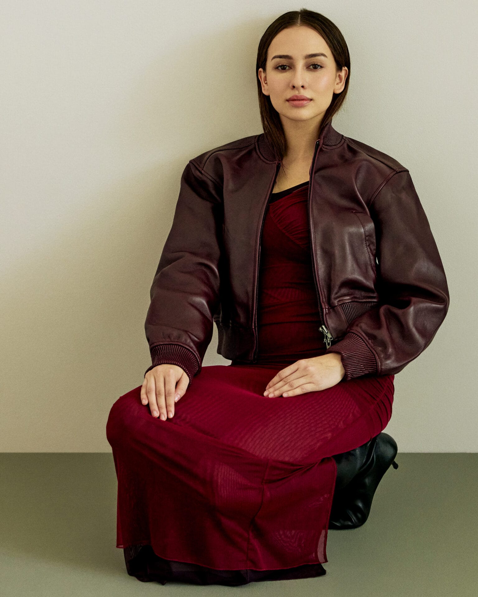 Turut mencuri perhatian ialah set jaket denim dengan efek sapuan cat yang artistik, gaun lace hitam dengan potongan offset, serta jaket utilitarian hitam yang memberikan struktur moden pada siluet. Bagi sentuhan yang lebih santai, terdapat juga t-shirt oversized rona pink lembut dan denim wide-leg dalam warna pink pudar yang memberikan mood edgy namun effortless.
