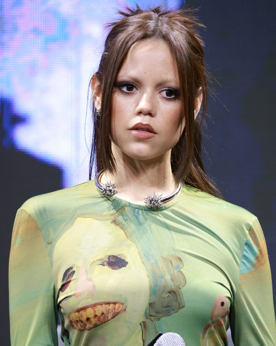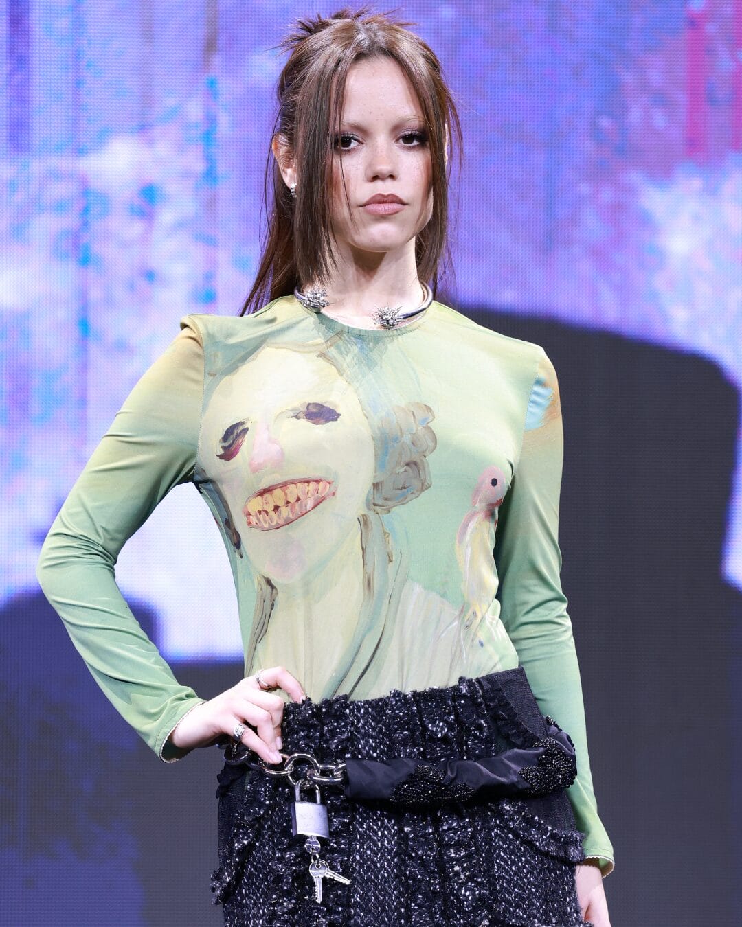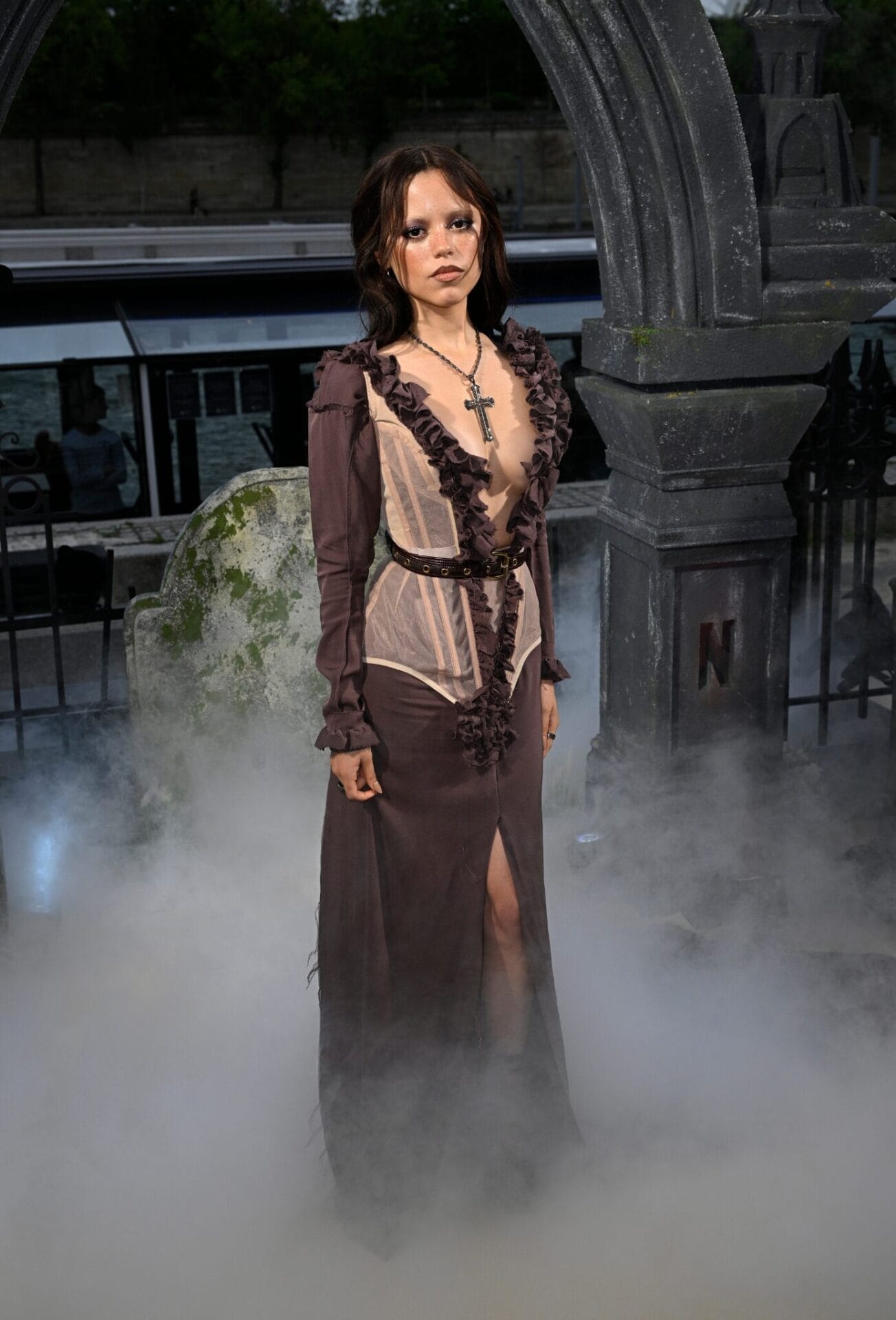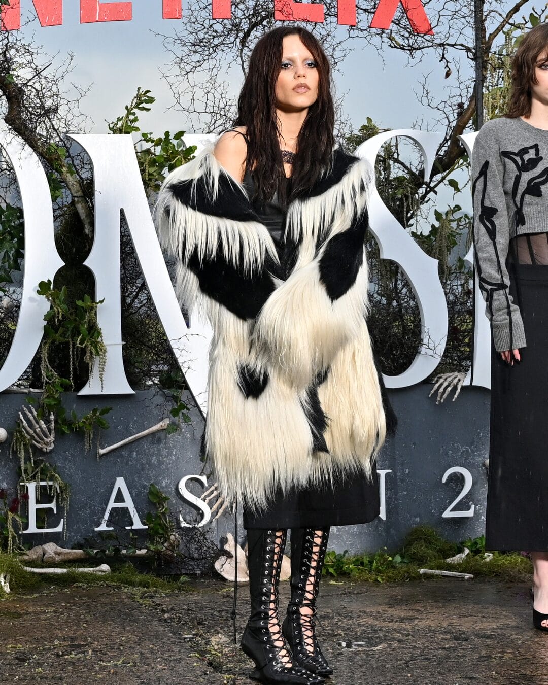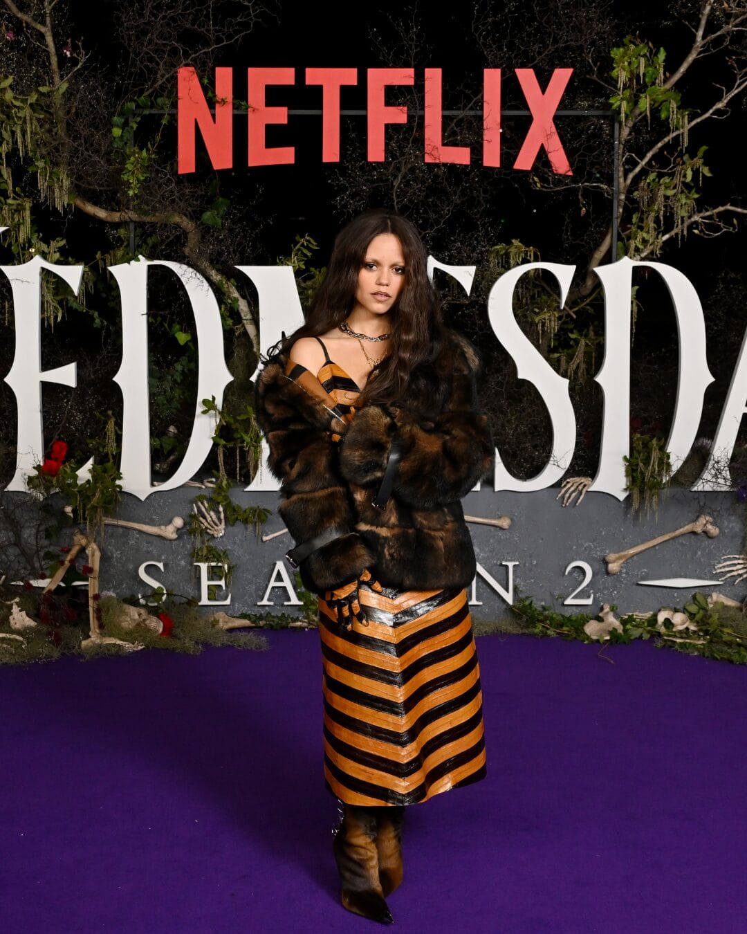 Jenna Ortega benar-benar menyelami wataknya, memancarkan aura menghantui yang memikat di tayangan perdana tersebut. Beliau mengenakan gaun bercetak kulit ular separa jarang daripada koleksi couture Ashi Studio Musim Luruh 2025, satu pilihan yang memadukan keanggunan dengan sentuhan eksentrik.