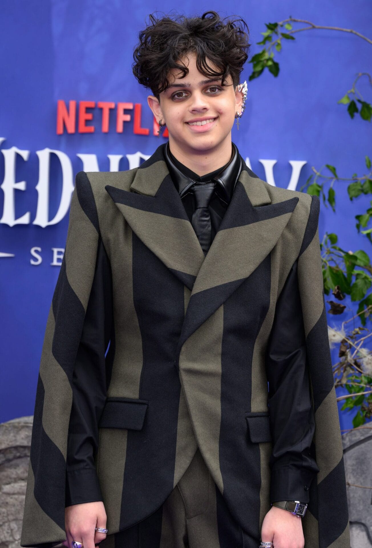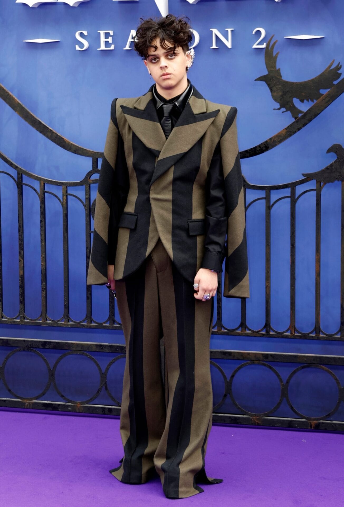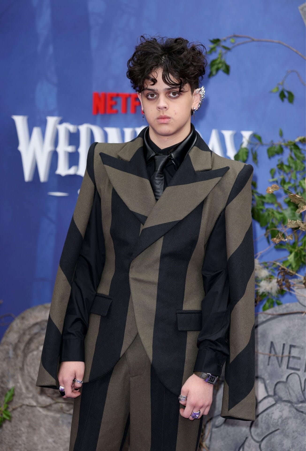 Bagi Isaac Ordonez, visinya jelas dan berani. Sut jalur blok army rekaan Landeros New York, digayakan dengan kemeja kulit, tali leher, barang kemas, dan solekan mata dramatik, memberi sentuhan unik berinspirasikan Beetlejuice. Potongan seluar berbelah menambah elemen moden yang membezakan penampilannya, sekali gus membuktikan keberaniannya bereksperimen dan mencipta momen segar di karpet merah.