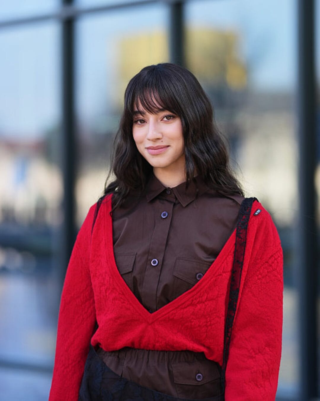 Ameera mengenakan red V-neck knit blouse, pilihan warna merah yang terang menyerlahkan aura berani. Bak kata di suntingan Instagram postingnya ‘A walking Red flags’.