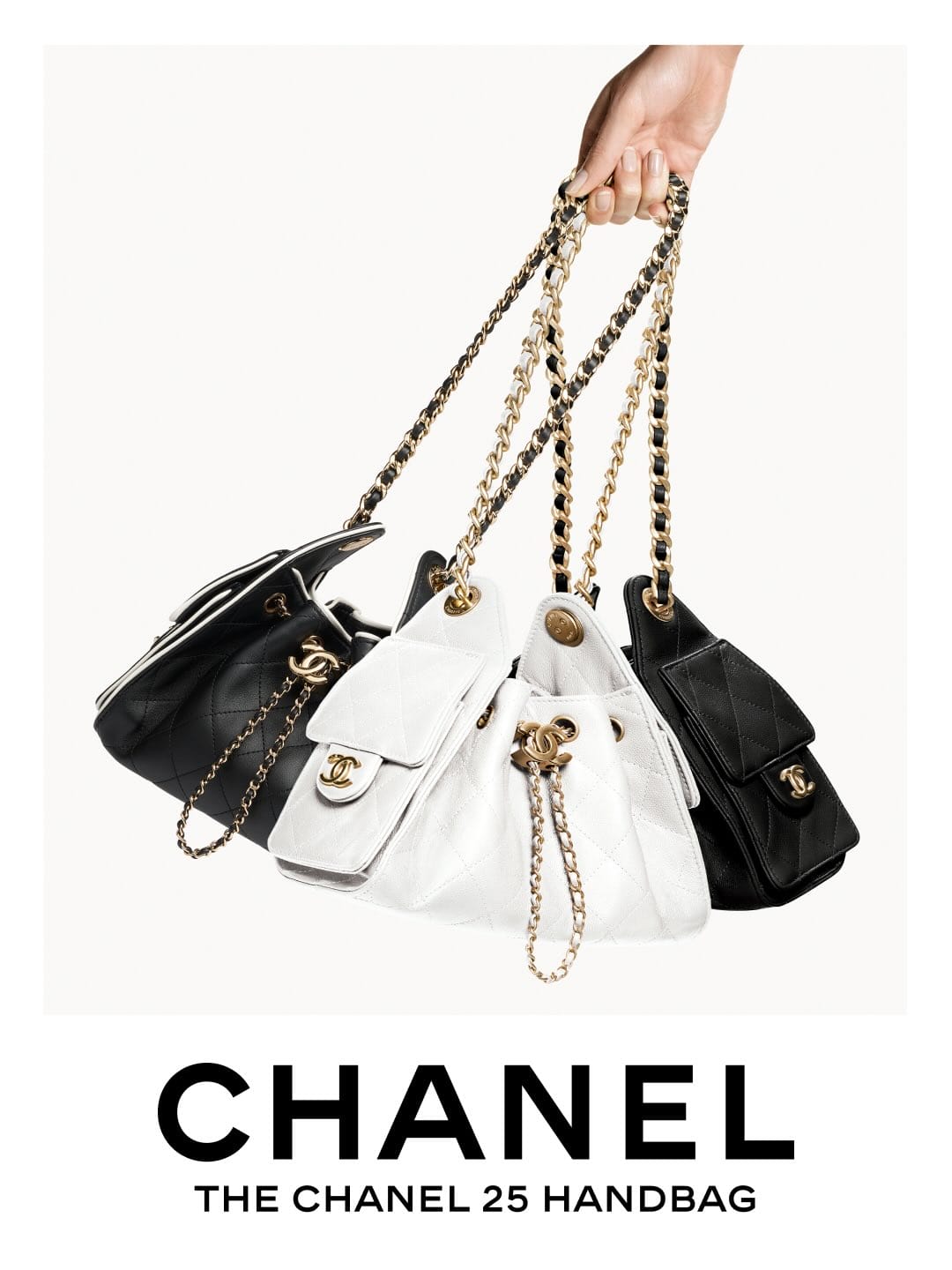 Diperkenalkan pada tahun 2025, beg CHANEL 25 menampilkan siluet berinspirasikan gaya hobo yang diperbuat daripada kulit berquilt mewah, lengkap dengan rantai berjalin yang menjadi signatur klasik Chanel. Tersedia dalam empat saiz berbeza, kempen terbaharu ini memberi tumpuan khusus kepada versi “Mini”, ditawarkan dalam rona burgundy pekat, khaki gelap dan ecru klasik yang sofistikated.