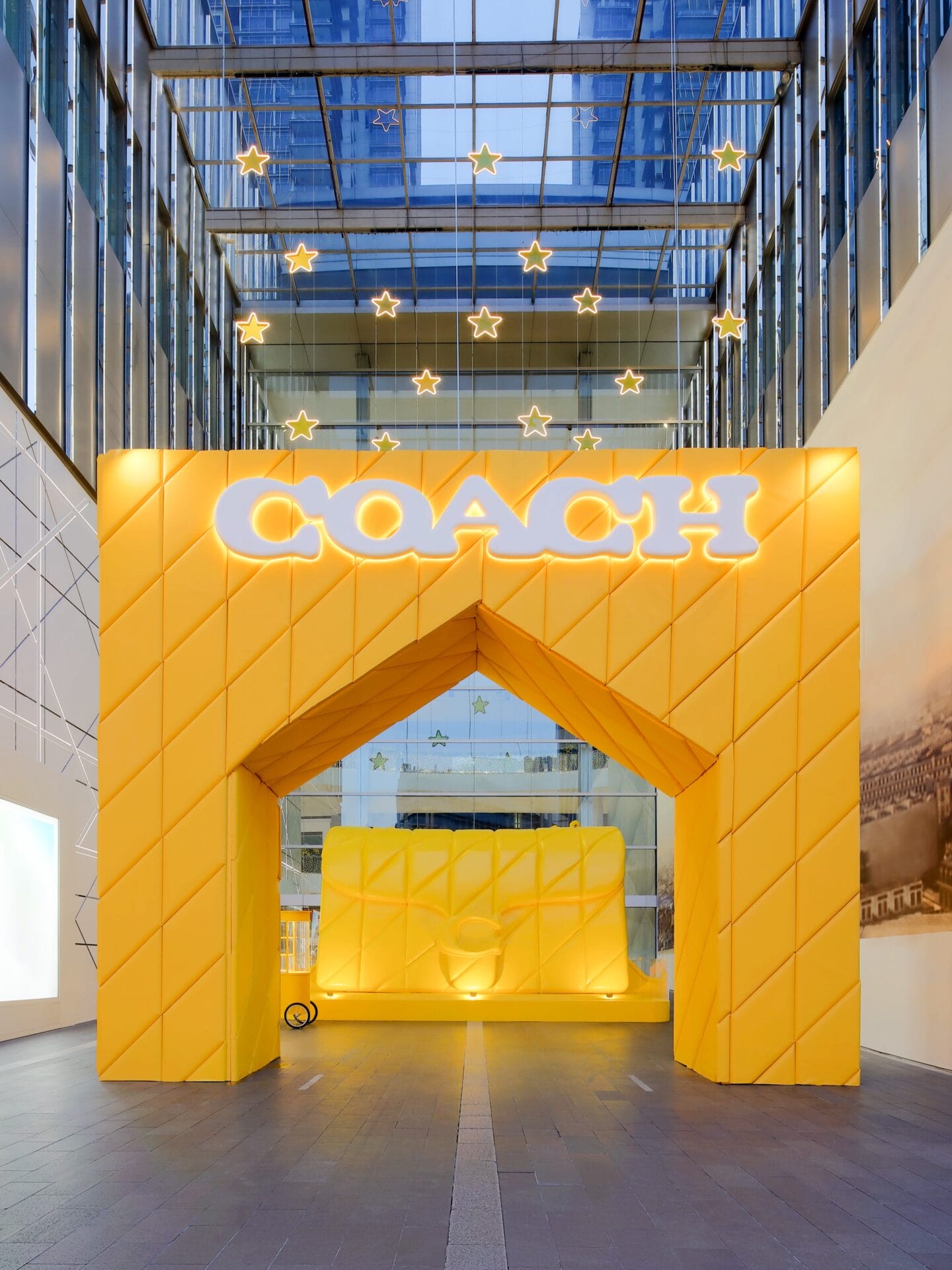 Menggabungkan tradisi tempatan dan semangat New York, Coach menghidupkan koleksi ikoniknya – beg tangan Quilted Tabby dalam bentuk arca besar yang terletak di pintu masuk pusat beli-belah.