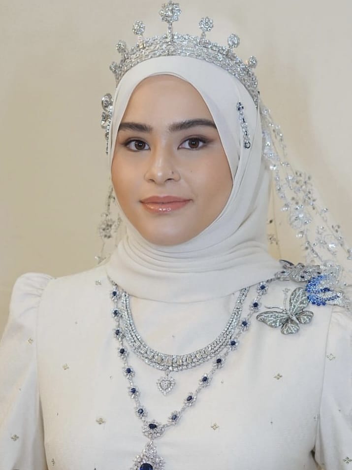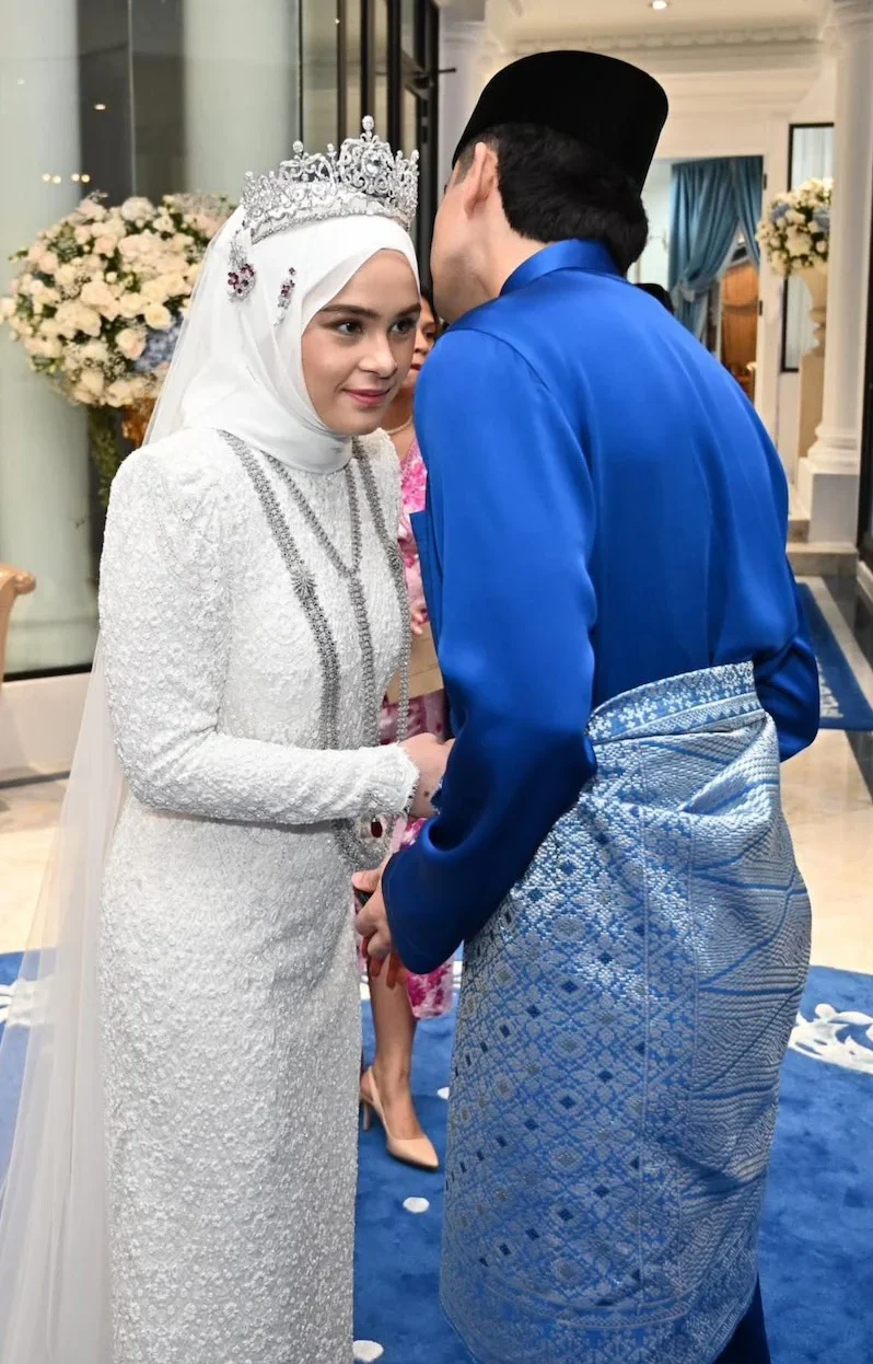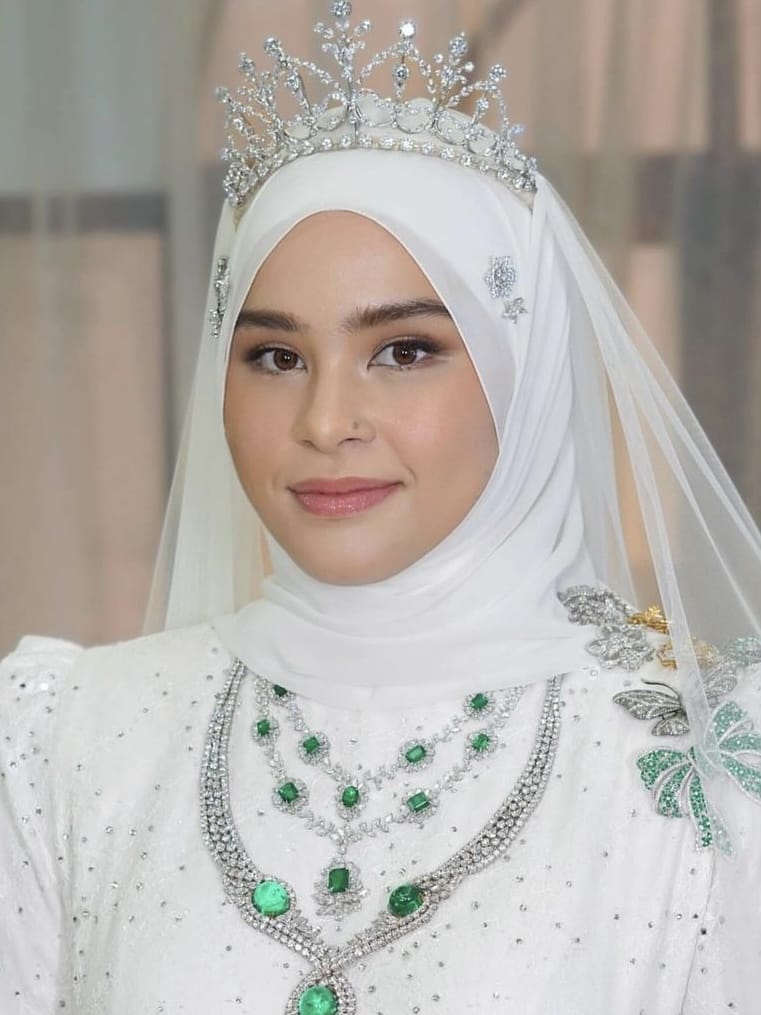 Penampilan Tengku Puteri Afzan benar-benar mencuri tumpuan ramai dengan busana serba putih daripada akad nikah sehingga persandingannya bersama FD Idzham.