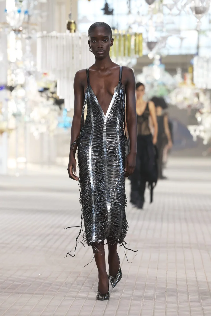 Bagaimana anda boleh menjadikan gaya minimalis lebih menarik dan menonjol? Dengan sentuhan silver. Ini jelas terlihat di peragaan semasa minggu fesyen Paris di mana pereka menambah elemen perak pada rekaan.