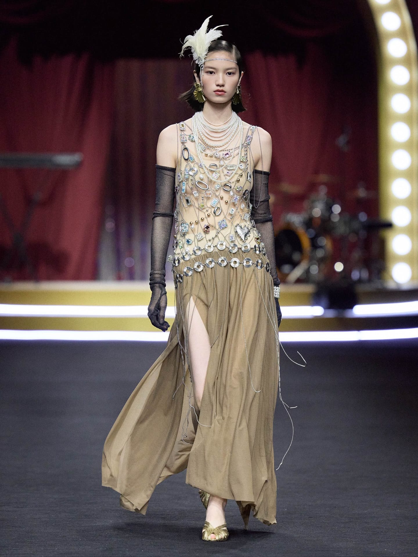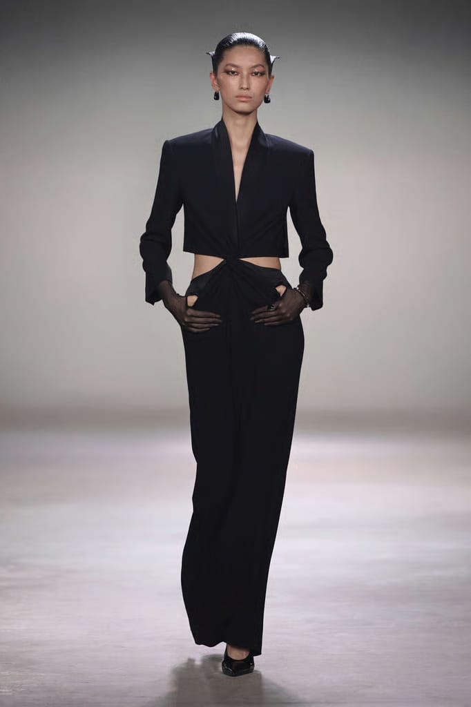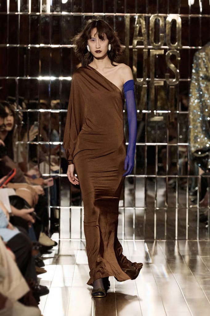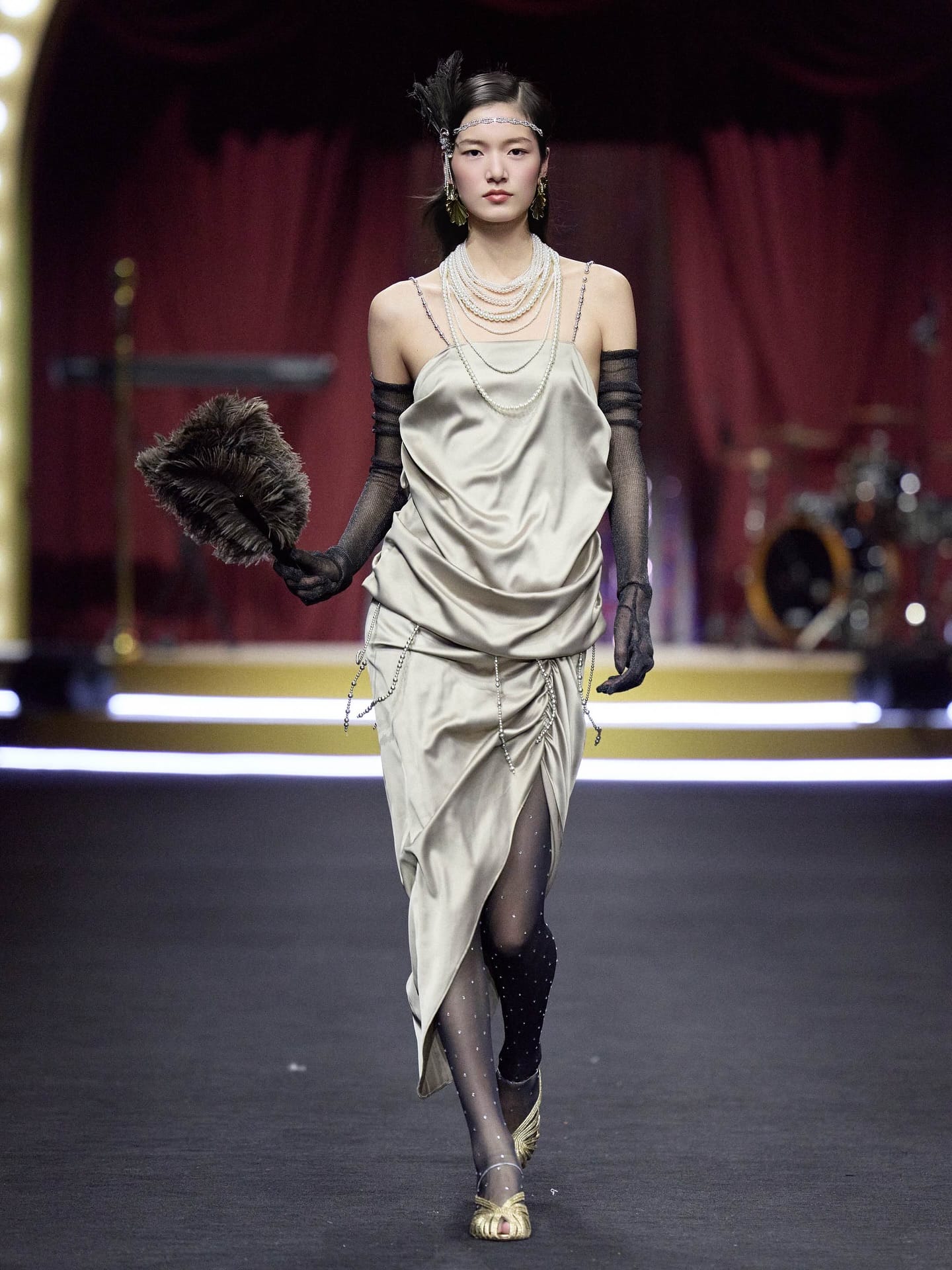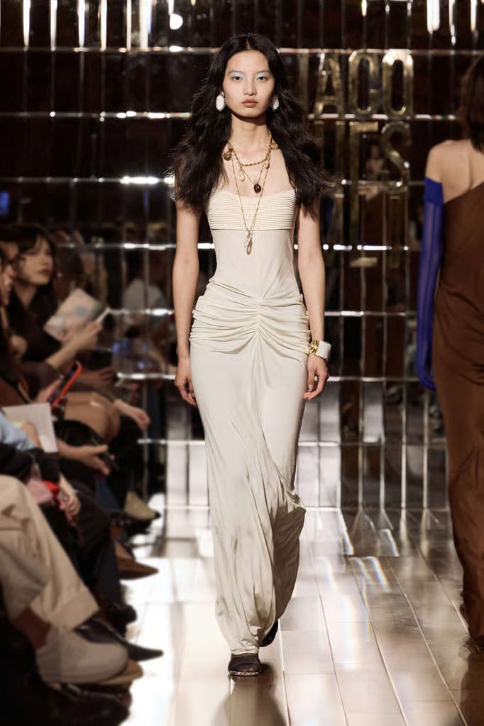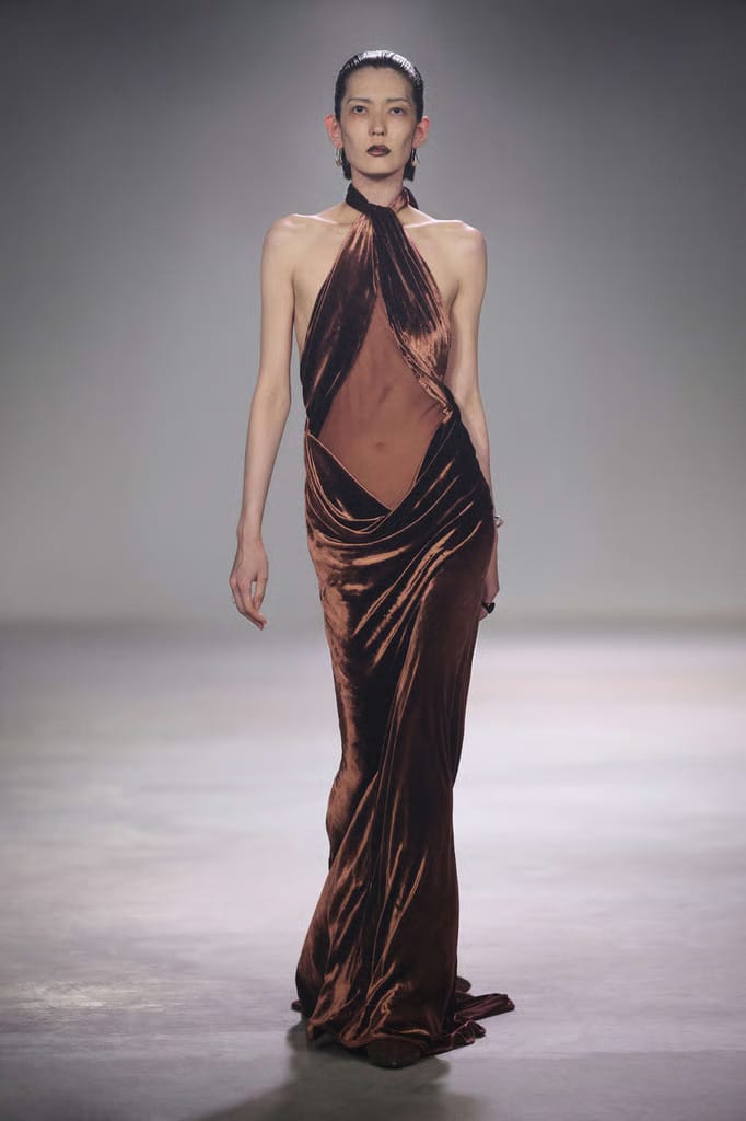 Antara sorotan utama termasuklah gaun sutera dan baldu dengan potongan dalam yang menonjolkan bentuk seni bina. Menyuntik elemen inspirasi pakaian sukan ke dalam koleksi yang berorientasikan pakaian malam, jenama ini menggunakan jersey satin yang digabungkan dengan seluar kargo dan top yang lembut.