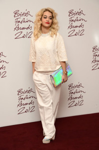 Rita Ora – Dia menggandingkan sweater bersama celana longgar. Tampak sopan.