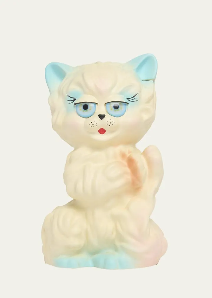Chat de Maison Clutch Bag daripada Valentino kelihatan seperti watak kucing kartun vintaj yang hidup semula. Dengan mata biru misteri, solekan eyeliner tebal, bulu mata lentik glamor, serta telinga dan kaki biru, kucing ini mempamerkan ekspresi seolah-olah sedang merancang sesuatu yang nakal. Ia boleh digenggam di tapak tangan atau digayakan dengan tali emas kecil, tergantung di sisi pinggul seperti kucing yang sedang berbaring untuk tidur siang.