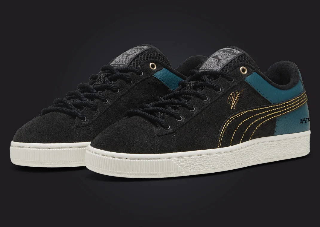 Sneakers adalah karya agung reka bentuk dan simbolisme, menggabungkan fungsi dengan estetika ikonik. Puma Suede ini dibina daripada campuran kaya suede, mesh, dan kulit. Bahagian atas ini berfungsi sebagai kanvas untuk aksen emas dan biru yang menyerlah yang menyerikan kasut dengan rasa kemewahan dan prestasi.