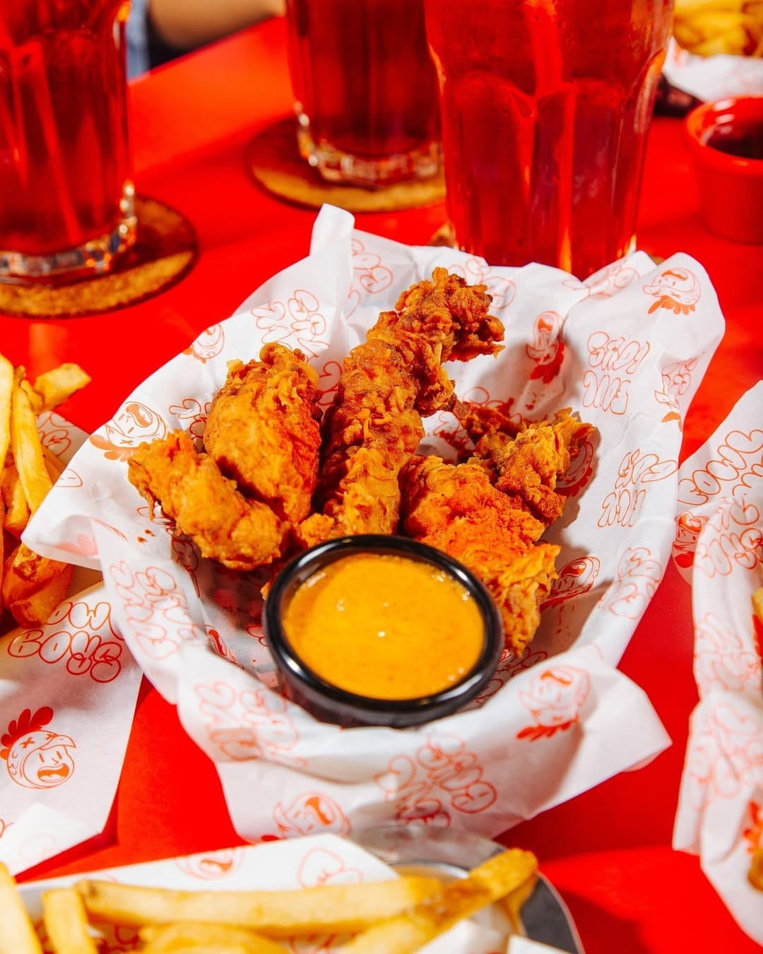 Chicken Tenders di FOWLBOYS sering disajikan bersama pelbagai pilihan sos, termasuk sos klasik seperti Garlic Mayo, Chicken Gravy, Buffalo Sauce, Cluck Sauce atau pilihan khas seperti Ranch. Hidangan 4 ketul ayam goreng ini juga menawarkan pilihan tahap kepedasan yang pelbagai, dari rasa Neat yang ringan sehingga tahap “Xtra Hot”.