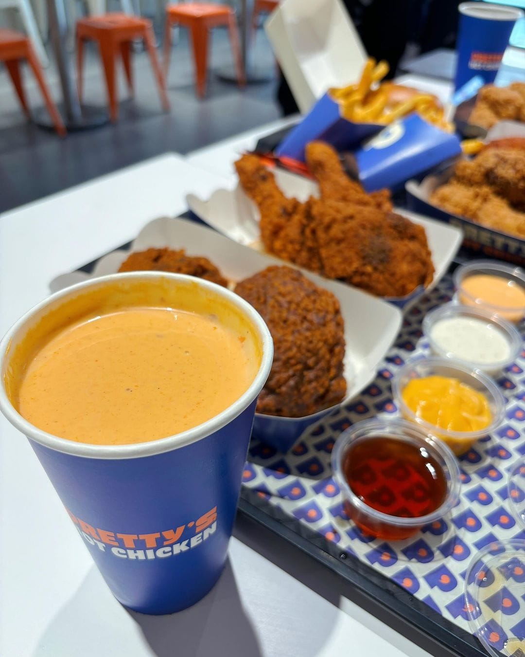 Restoran ini juga terkenal dengan pilihan tahap kepedasan yang pelbagai, dari rasa Ori yang ringan sehingga tahap “Hell Hot” untuk mereka yang berani mencabar citarasa. Anda boleh memilih tahap pedas yang sesuai dengan selera dan mencelup ayam goreng dalam Pretty Sauce (sos cawan) berharga RM18.