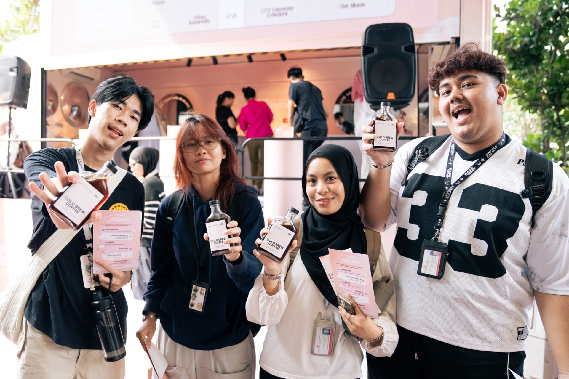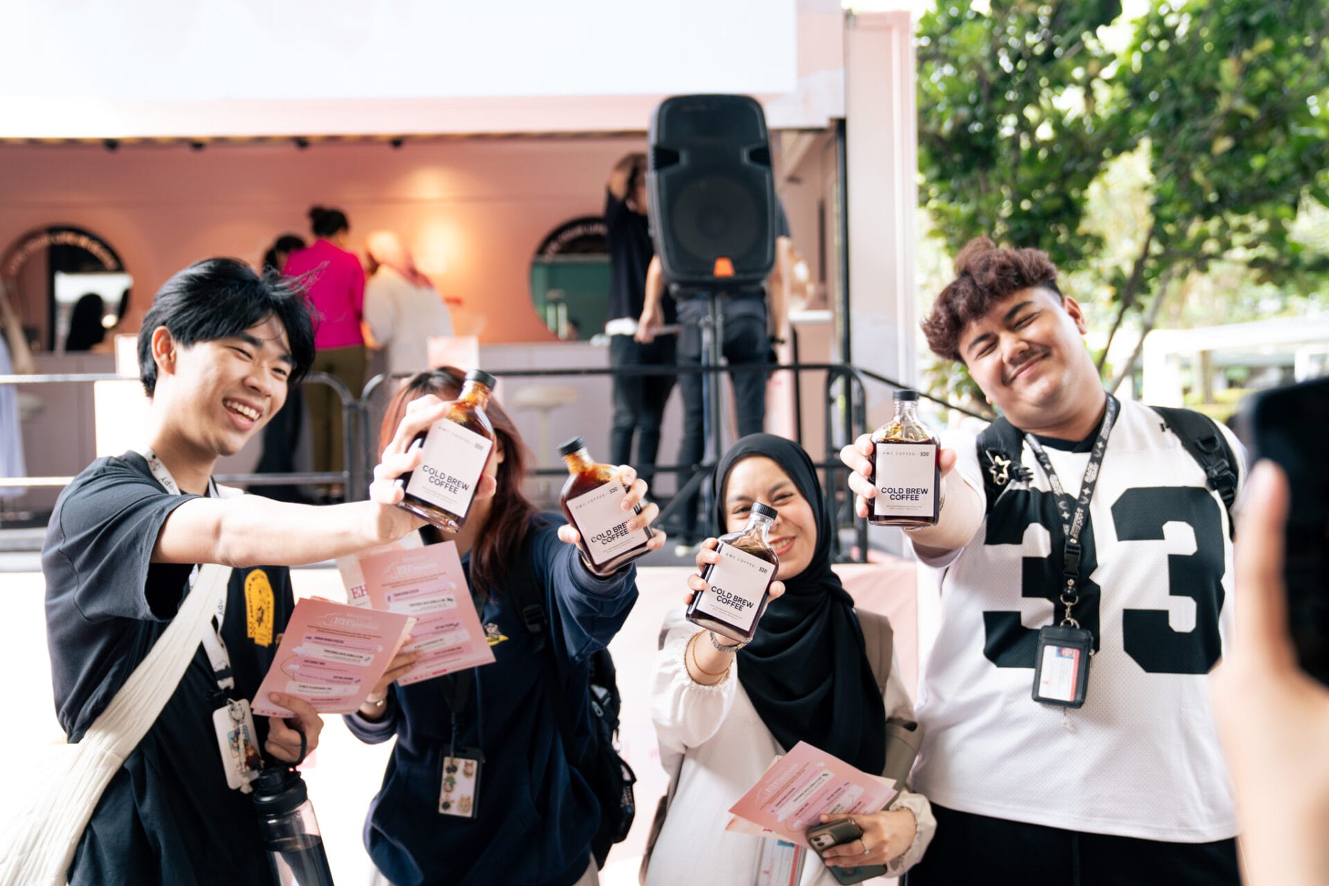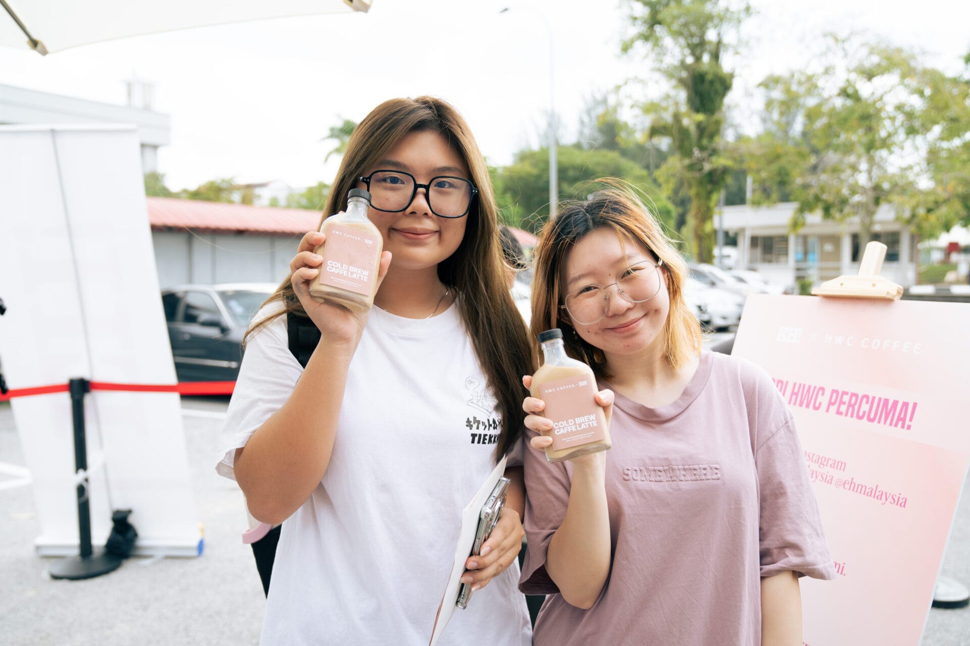 Di setiap lokasi, sebanyak 100 botol Cold Brew HWC Coffee diedarkan secara percuma kepada para pelajar yang hanya perlu: