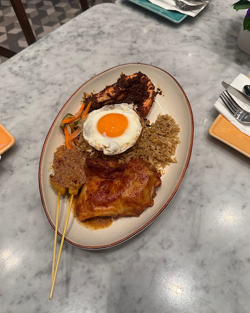 Apa yang sempat saya cuba sewaktu ke sini tempoh hari ialah GK Sambal Fried Rice (nasi goreng) yang lengkap dengan sate, udang, ayam goreng dan telur mata. Turut disajikan Chef Joe’s Nostalgic Mini Chicken Bao, Angus Beef Burger dan juga Mixed Green Salad.