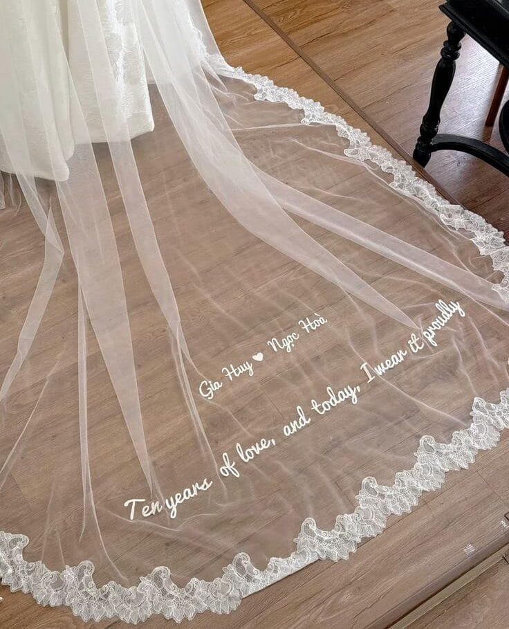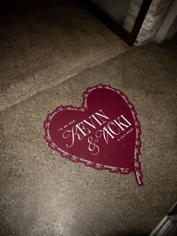 Nama pasangan, tarikh nikah atau kata-kata istimewa kini dibawa terus ke atas fabrik sama ada disulam, dicetak atau dilukis secara artistik. Dari pakaian pengantin ke backdrop, aisle runner hingga table linen, setiap sentuhan kecil ini menjadikan dekorasi terasa lebih peribadi dan dekat di hati.