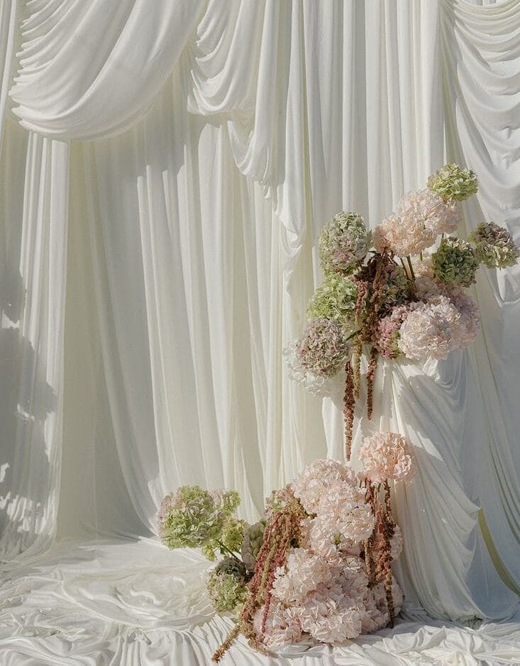 Fabrik sekarang bukan sekadar backdrop semata, ia adalah main character. Draping lembut yang beralun dan jatuh natural buat ruang terasa dreamy dan aesthetic, tanpa perlu terlalu kemas atau dibuat-buat. Gabungan fabrik seperti voile, satin dan organza pula menjadikan ruang nampak lebih berlapis dan refined.