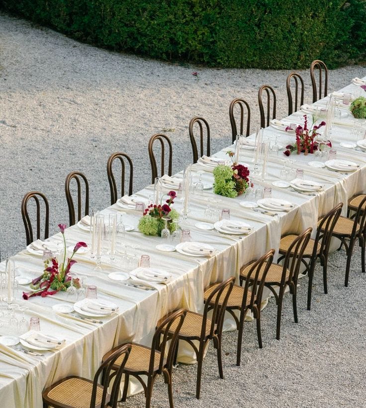 Meja bulat kini bukan lagi satu-satunya pilihan. Meja panjang mencipta suasana yang lebih intimate. Sesuai untuk majlis yang mahukan rasa lebih rapat dan eksklusif. Dihiasi lilin, susunan bunga rendah dan fabrik yang jatuh lembut, long table styling memberi sentuhan yang refined, warm dan effortless.