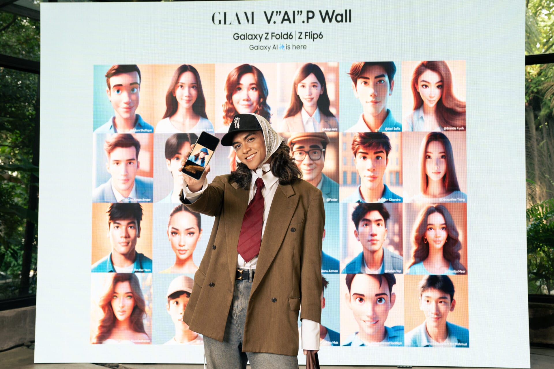 Stesen GLAM mempersembahkan ‘LED wall’ istimewa, V.”AI”.P, yang menampilkan wajah-wajah tetamu dalam versi AI.