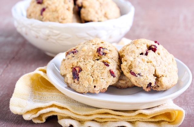 1. Satukan bahan-bahan kering oat, tepung gandum, kranberi, soda bikarbonat dan garam laut.