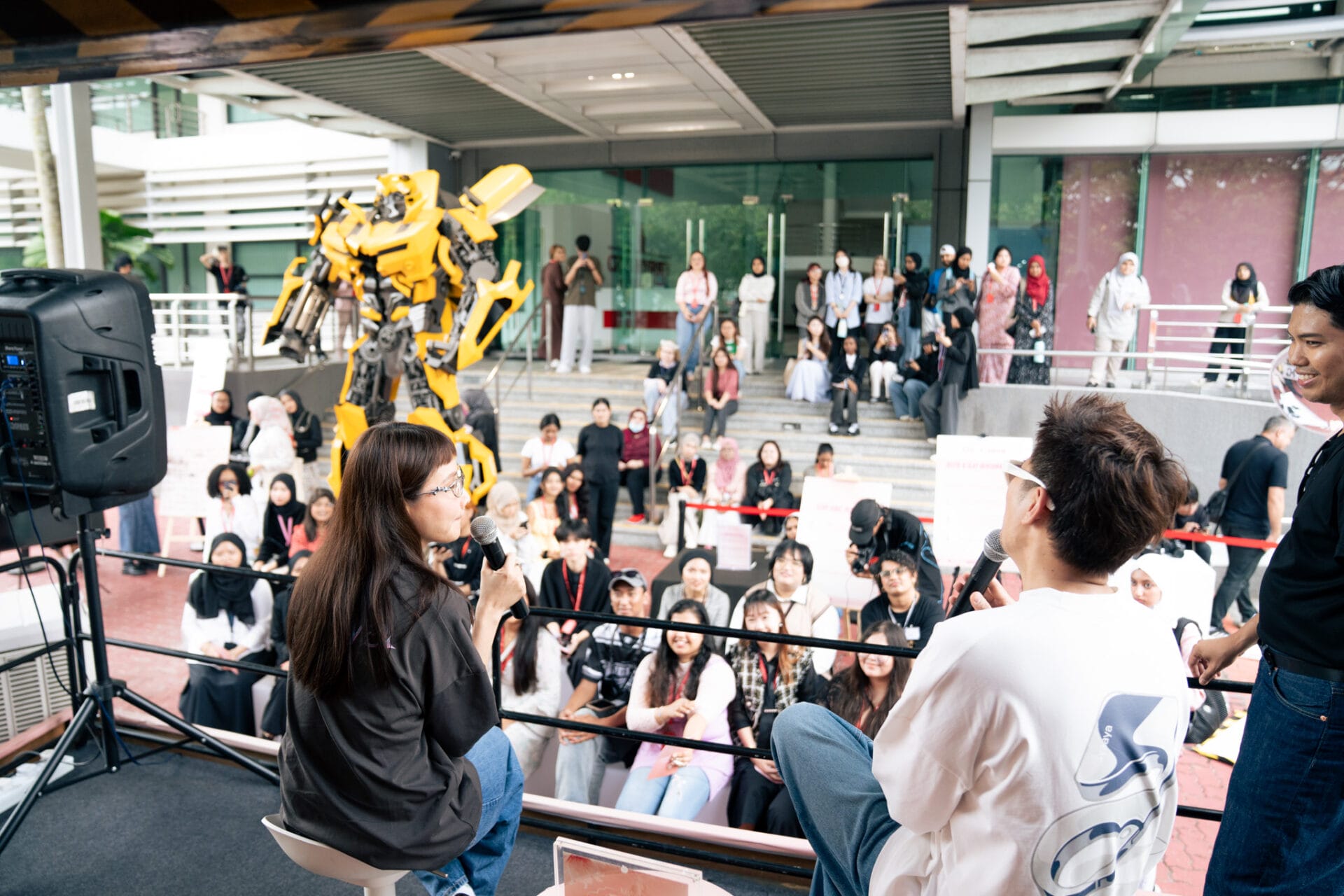Scha dan Awal meluangkan masa bersama pelajar untuk berkongsi kisah di sebalik penubuhan jenama tersebut, dari inspirasi gaya, cabaran membina empayar, hingga misi mereka untuk meraikan identiti individu melalui fesyen yang versatil dan berani.