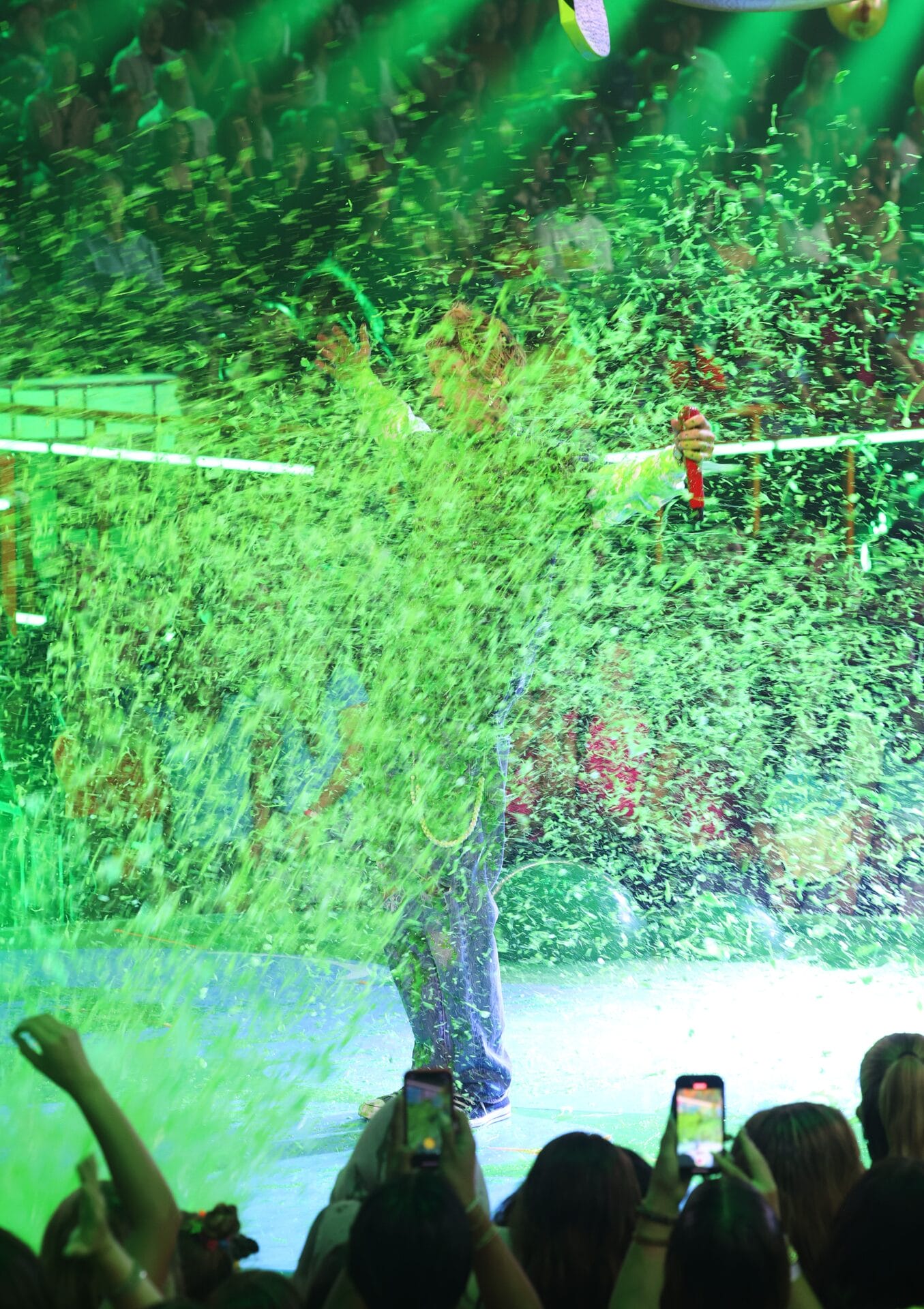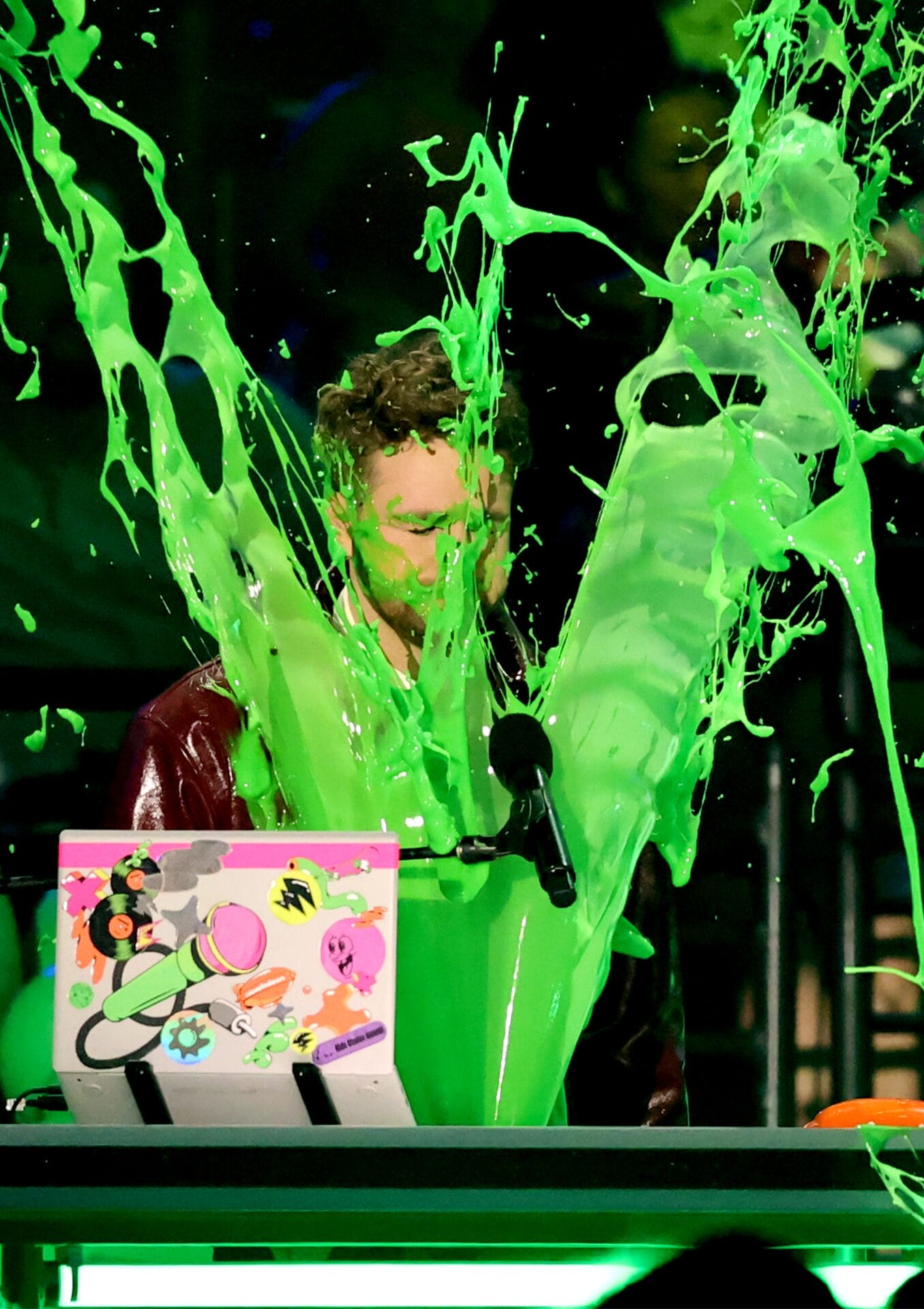 Alex Warren turut menjadi antara selebriti yang “dislimed” semasa berada di atas pentas, slime hijau yang diletupkan tepat semasa beliau sedang bercakap, menyebabkan dia disimbah hampir sepenuh badan secara spontan.