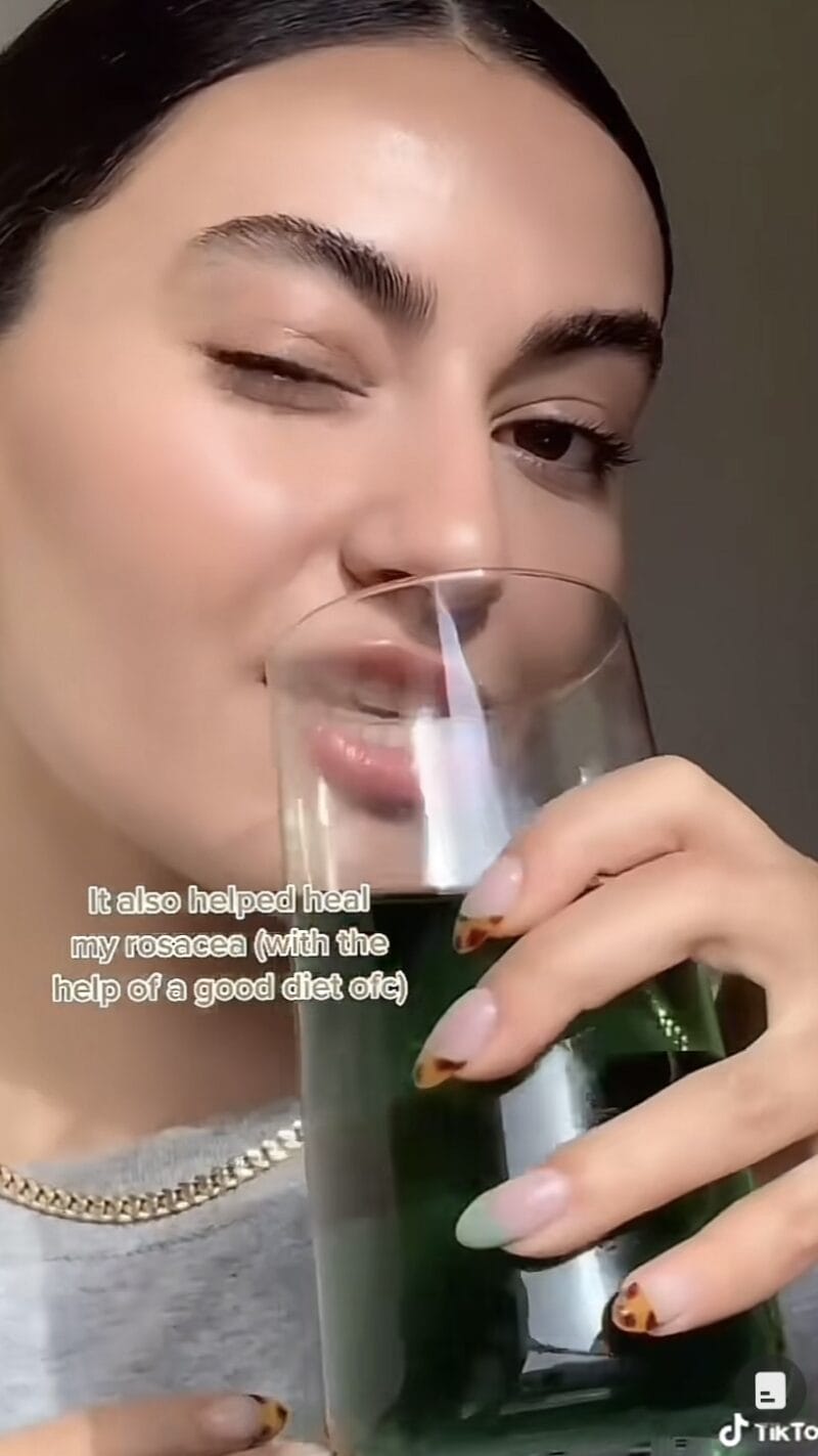 Salah satu manfaat utama klorofil adalah potensinya untuk membuat kulit bersih, sihat, dan berseri kerana kandungan klorofil yang tinggi. Sumber klorofil ini berasal dari pigmen hijau dalam tumbuhan, dan air klorofil kaya akan antioksidan dan magnesium, yang secara umum memberi manfaat pada kesihatan tubuh badan. Bagi mereka yang menghadapi masalah jerawat, minum air klorofil ini dapat membantu mengurangi pertumbuhan jerawat dan meningkatkan kebersihan kulit.
