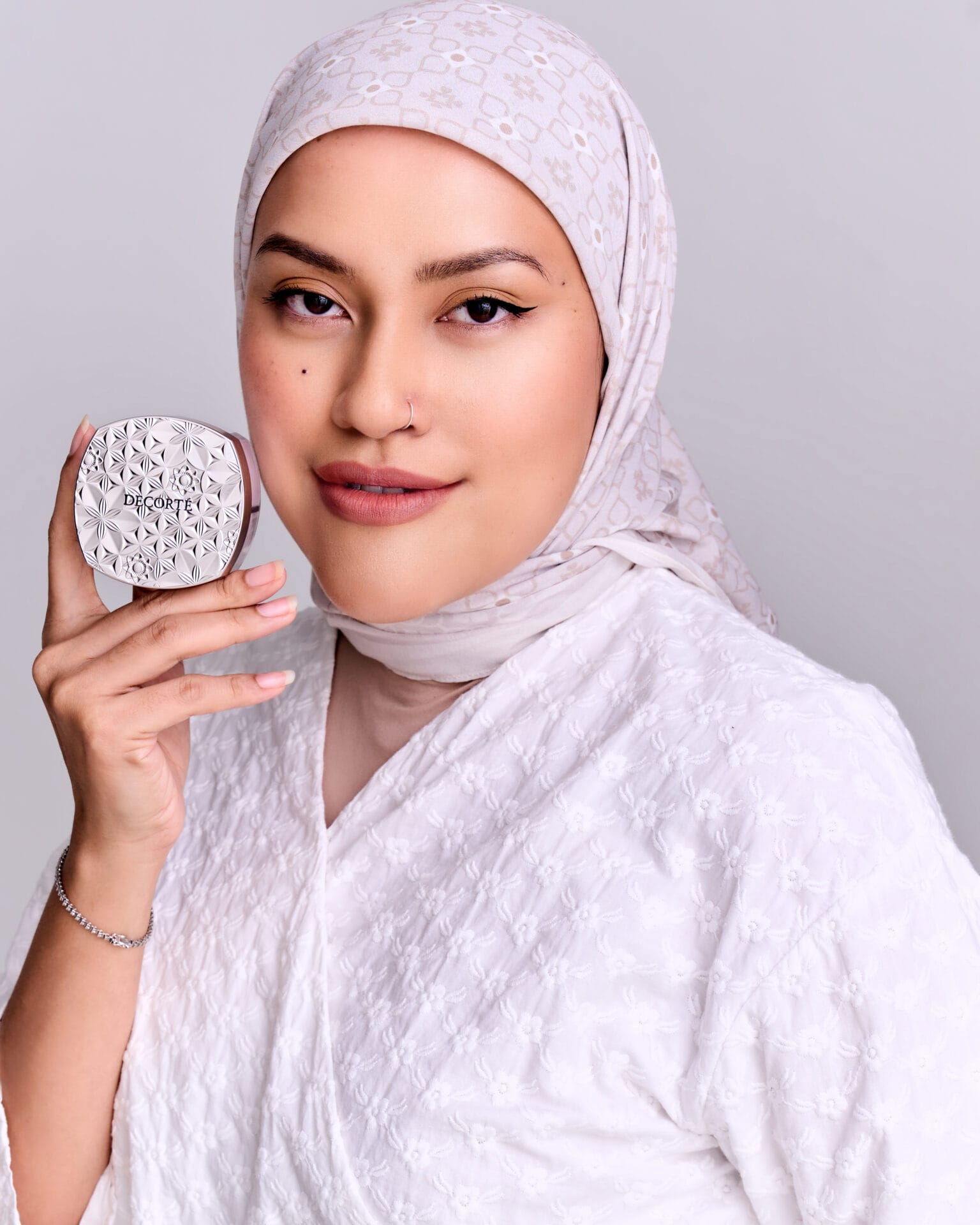 “Penampilan diri sangat penting untuk mengekalkan imej profesional saya jadi untuk memastikan makeup i flawless the whole day, I choose loose powder from DECORTÉ to set my face” – Sabrina Azhar, Pempengaruh Digital