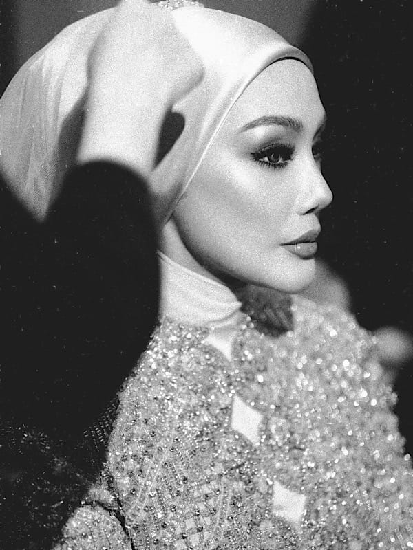 Soft glam. Solekan diberi perhatian pada bahagian mata, tapi tidak terlalu bold dan tidak juga terlalu light. Untuk solekan mata saya menggunakan palet pembayang mata dari Charlotte Tilbury, dan saya memilih ton chrome sebagai warna utama.