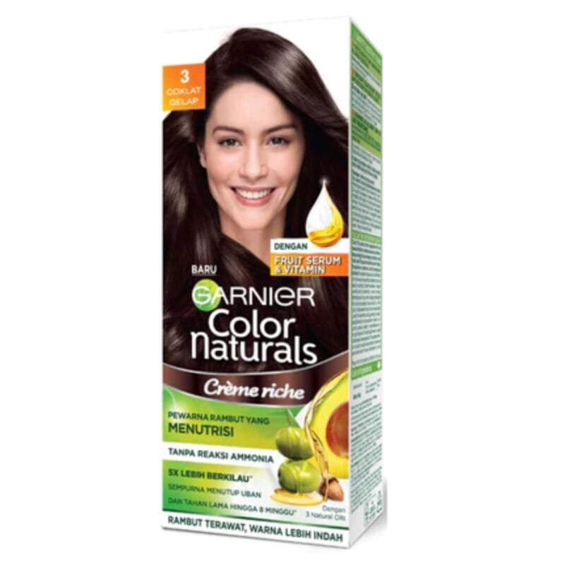 Minyak zaitun, avocado dan badam menjadikan warna rambut Cream Color Naturals dari Garnier lebih sihat dan berkilat. Selain itu, pewarna rambut Garnier ini tidak mengandungi ammonia, disahkan halal dan kekal warnaya sehingga lapan minggu.
