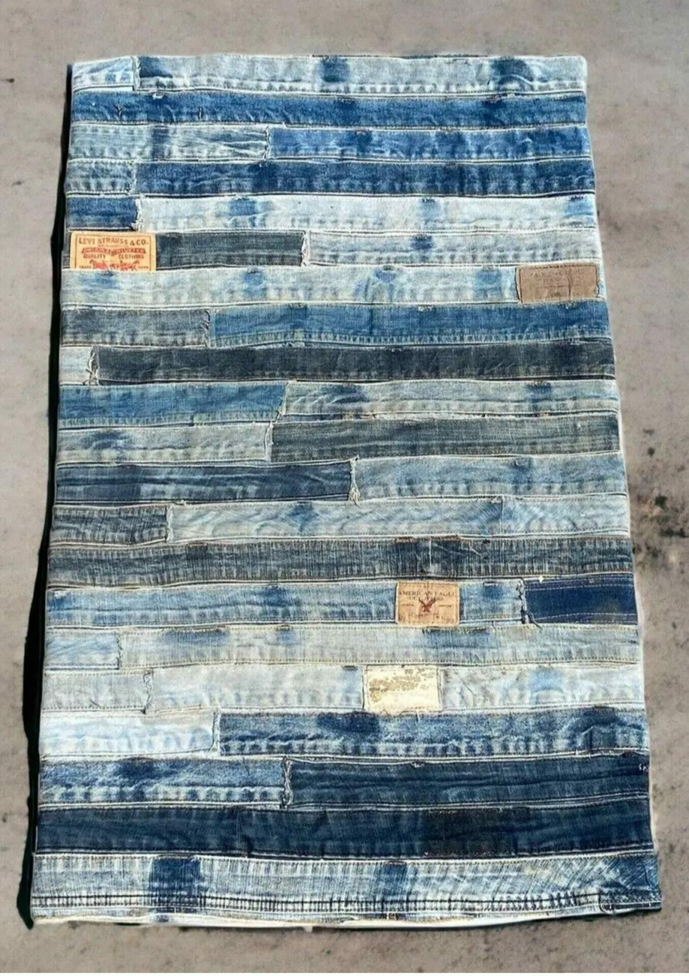 Mengapa tidak mengubah jean lama anda menjadi permaidani tampalan unik yang bukan sahaja mengekalkan kenangan terindah tetapi juga menyerikan hiasan rumah anda dengan suasana yang selesa? Dengan menggunakan denim lama sahaja sebagai medium artistik, usaha kreatif ini dapat menggabungkan kepraktisan dengan sentimentaliti. Transformatif ini akan memberikan nafas baharu kepada pakaian lama anda.